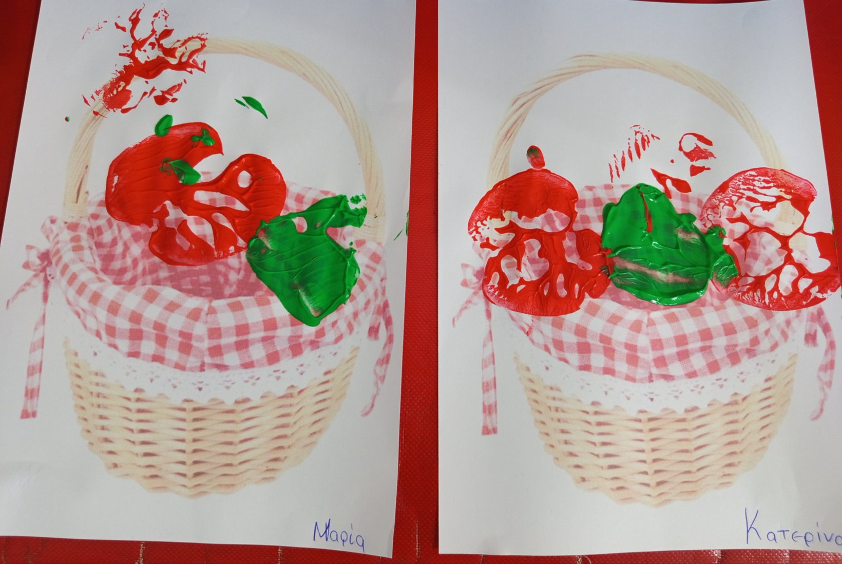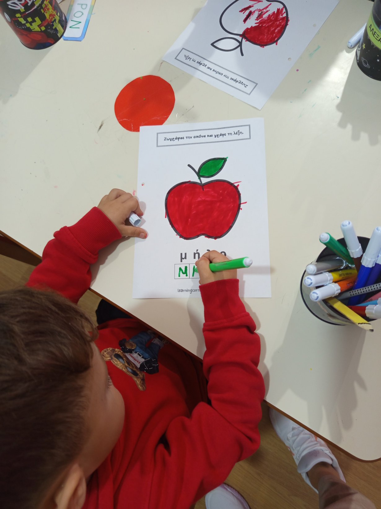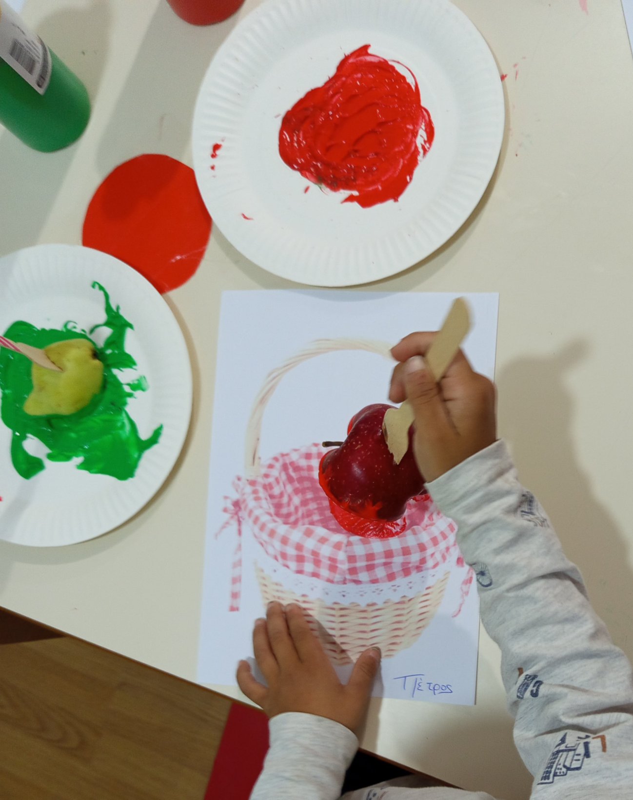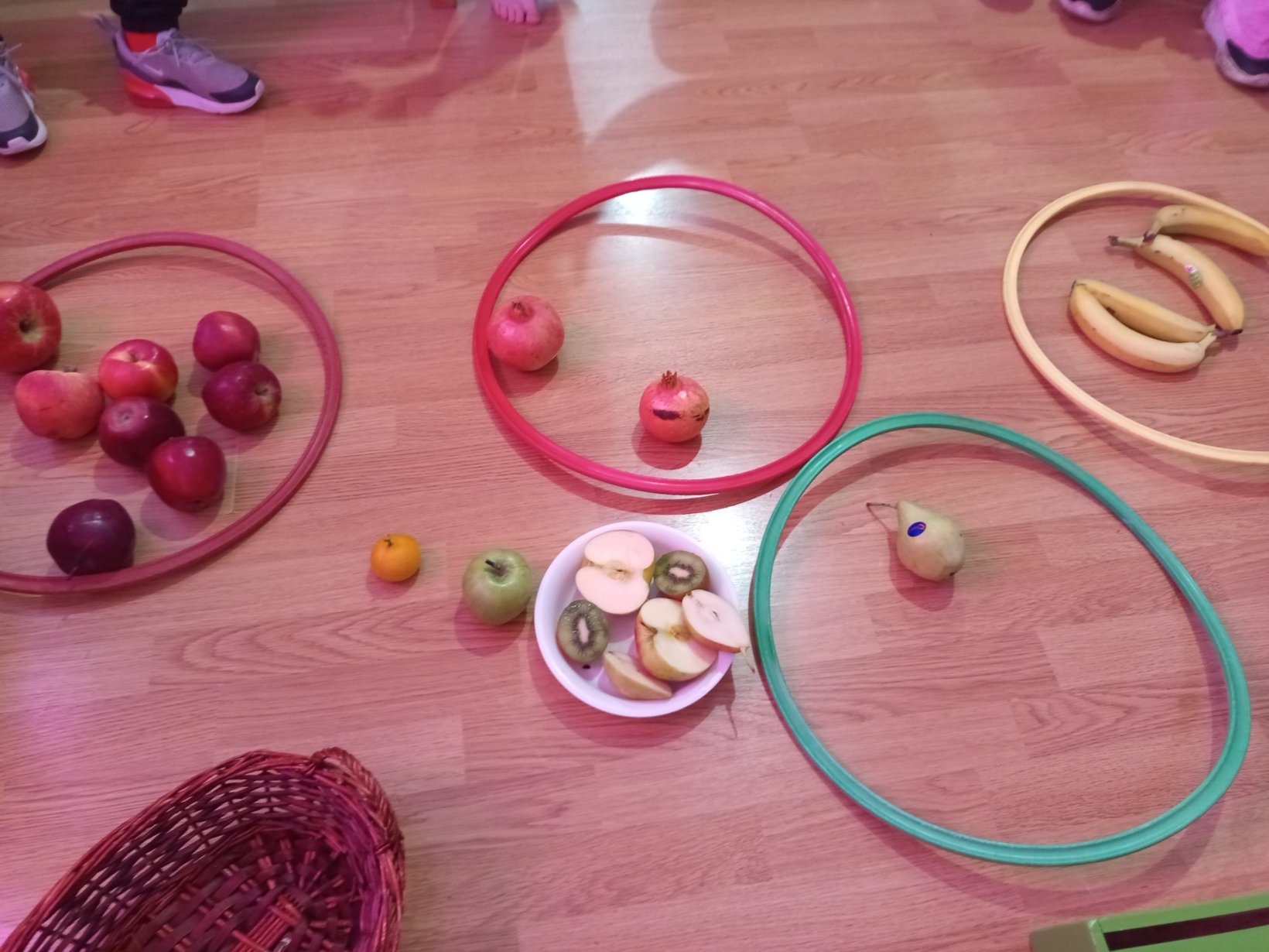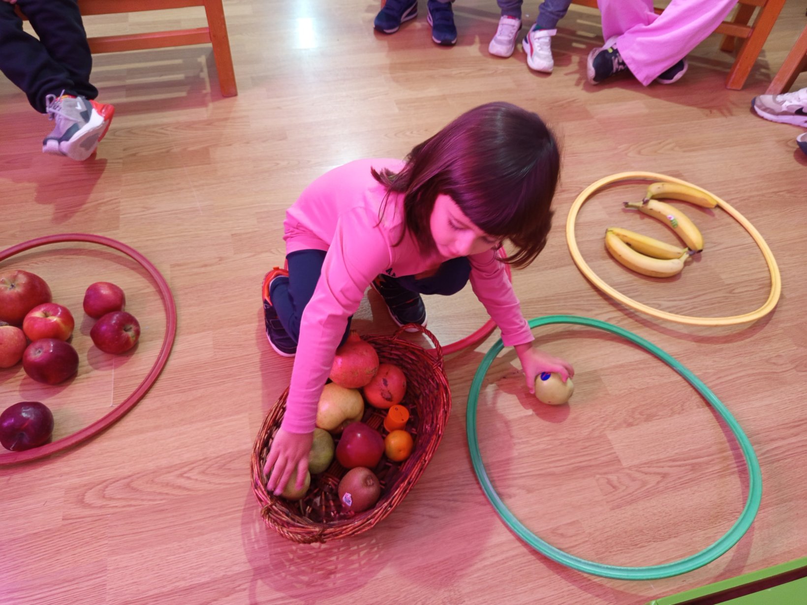 Μιλήσαμε για τα φθινοπωρινά φρούτα, τα ομαδοποιήσαμε, φτιάξαμε τυπώματα, γευστήκαμε φρουτοσαλάτα και ήπιαμε φρέσκο χυμό πορτοκάλι, την οποία μας έφτιαξε μαμά ενός μαθητή μας.