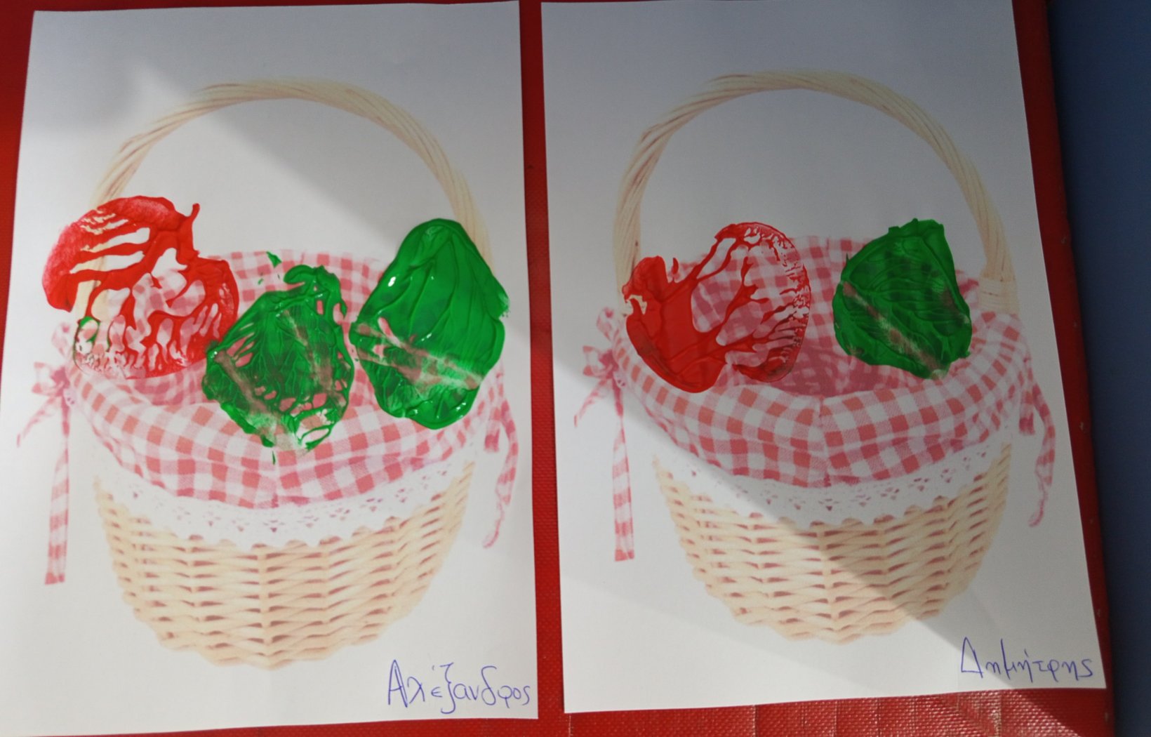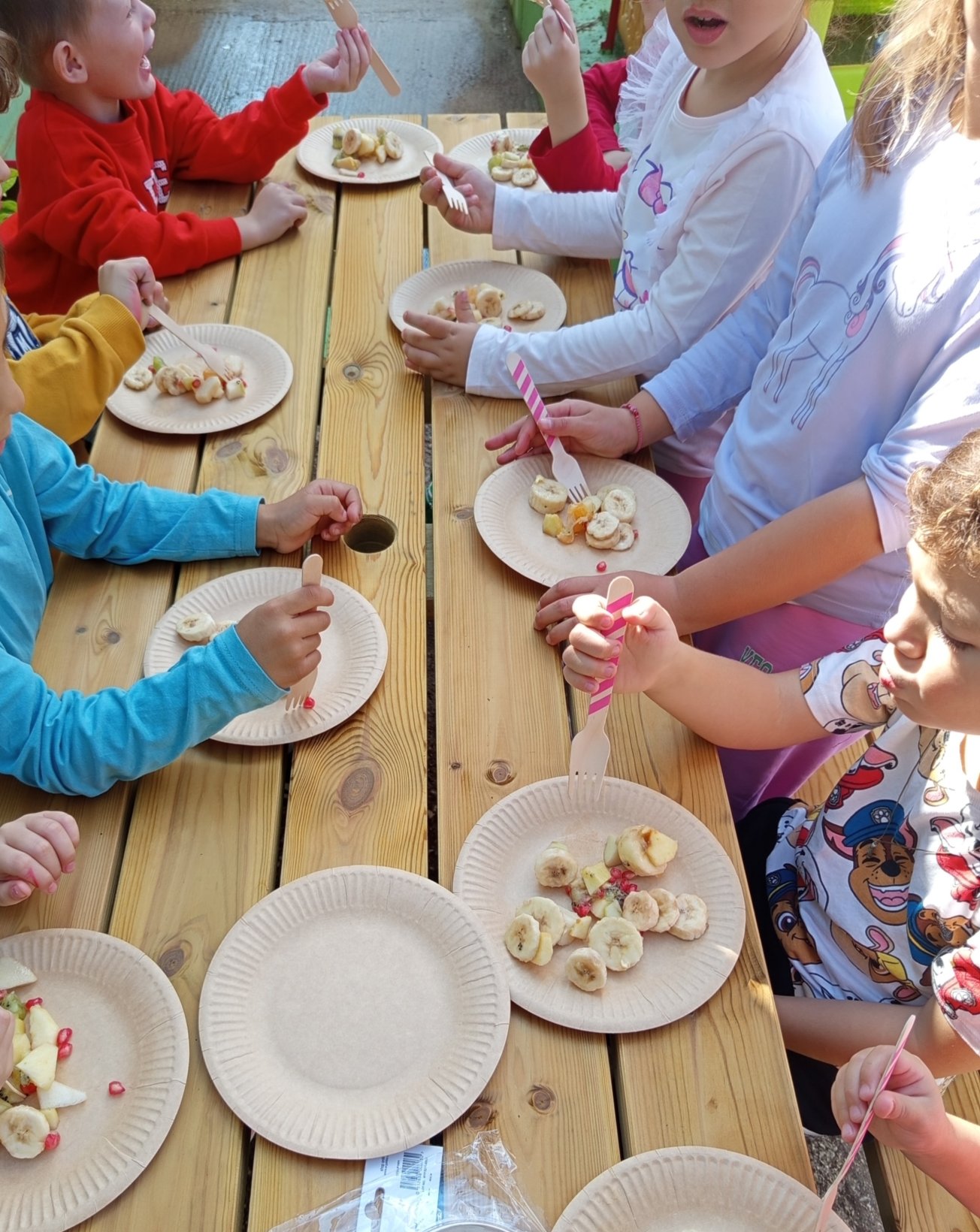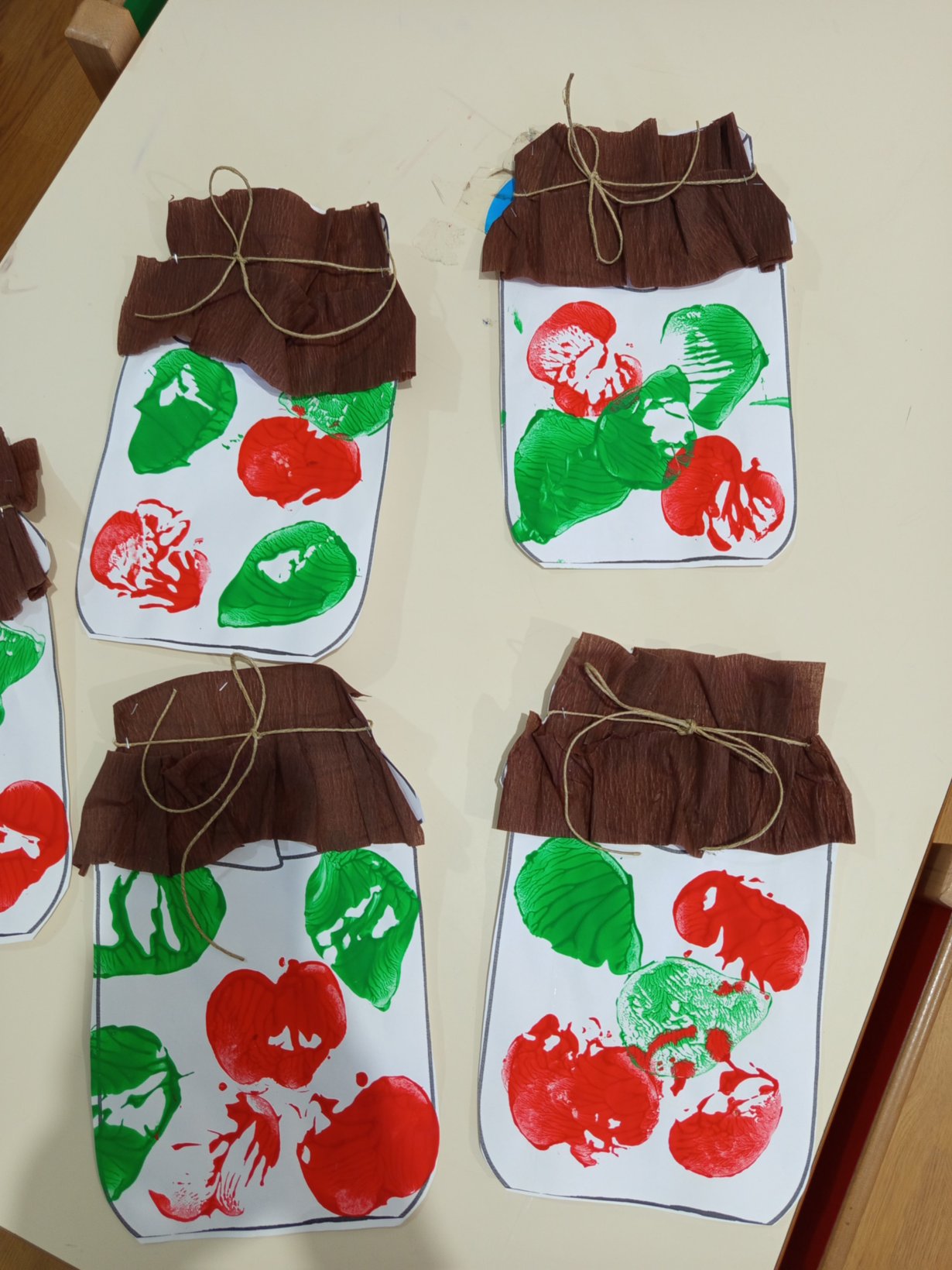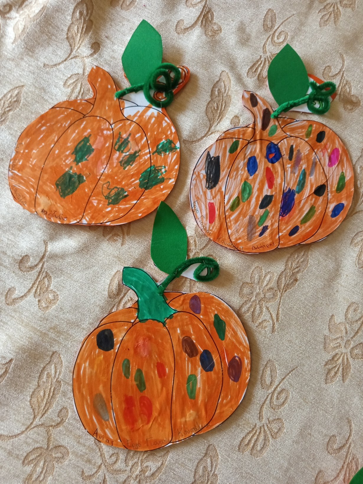 Μιλήσαμε για τα φθινοπωρινά φρούτα, τα ομαδοποιήσαμε, φτιάξαμε τυπώματα, γευστήκαμε φρουτοσαλάτα και ήπιαμε φρέσκο χυμό πορτοκάλι, την οποία μας έφτιαξε μαμά ενός μαθητή μας.