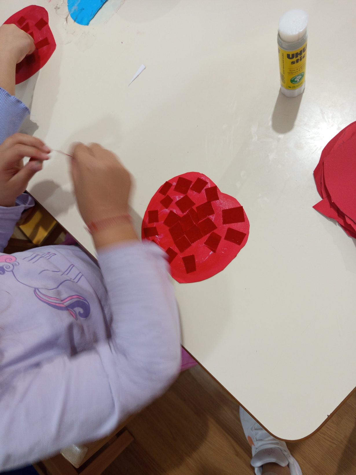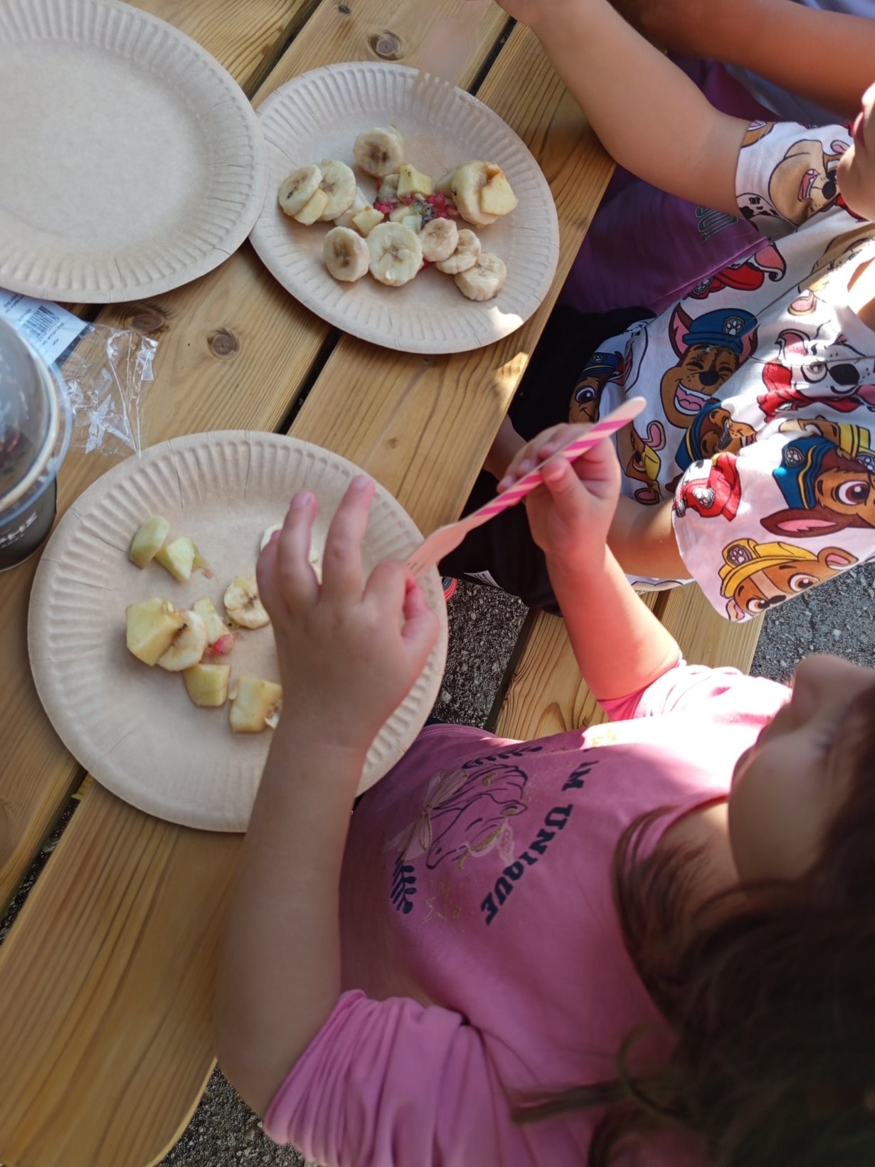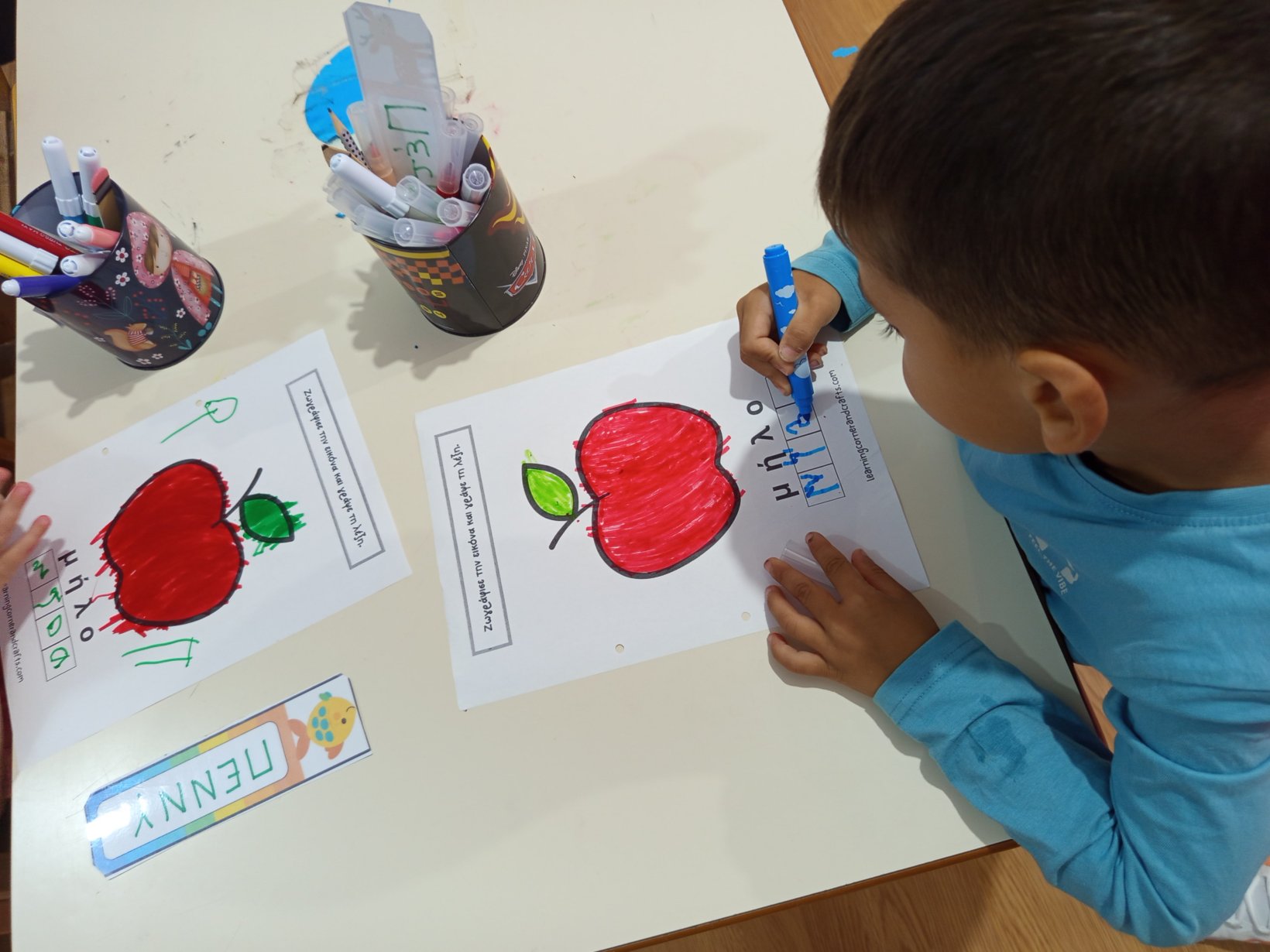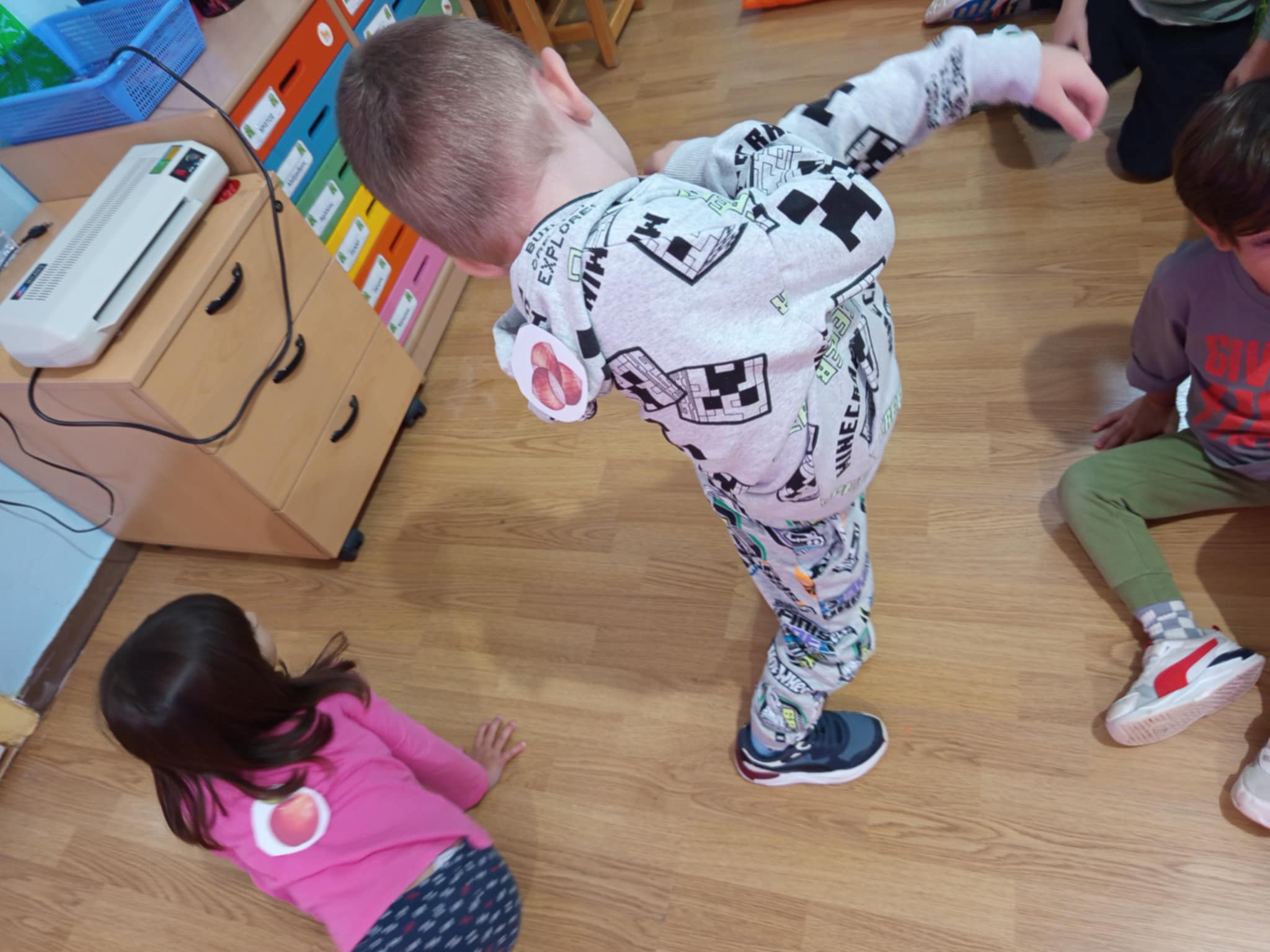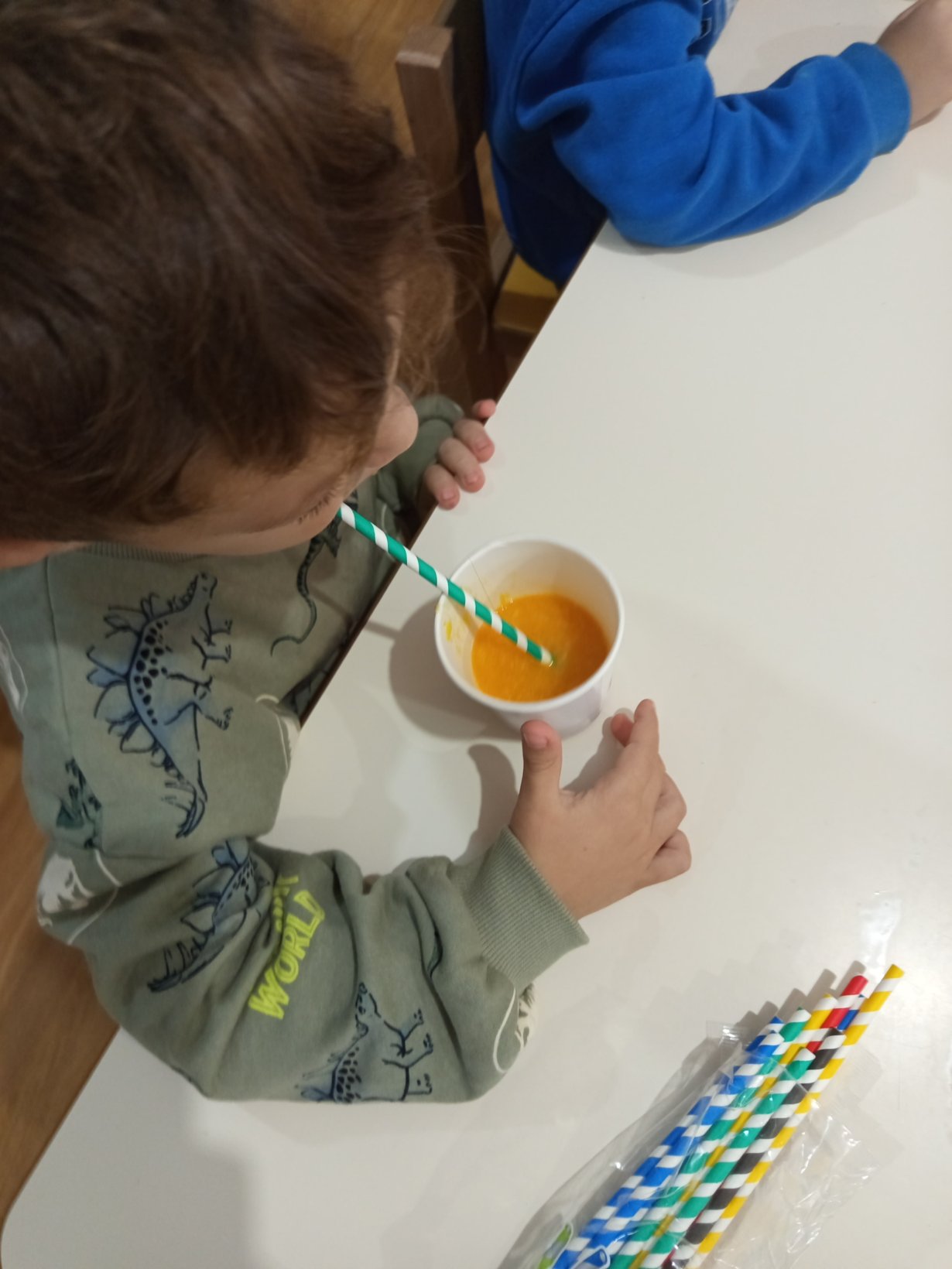 Μιλήσαμε για τα φθινοπωρινά φρούτα, τα ομαδοποιήσαμε, φτιάξαμε τυπώματα, γευστήκαμε φρουτοσαλάτα και ήπιαμε φρέσκο χυμό πορτοκάλι, την οποία μας έφτιαξε μαμά ενός μαθητή μας.
