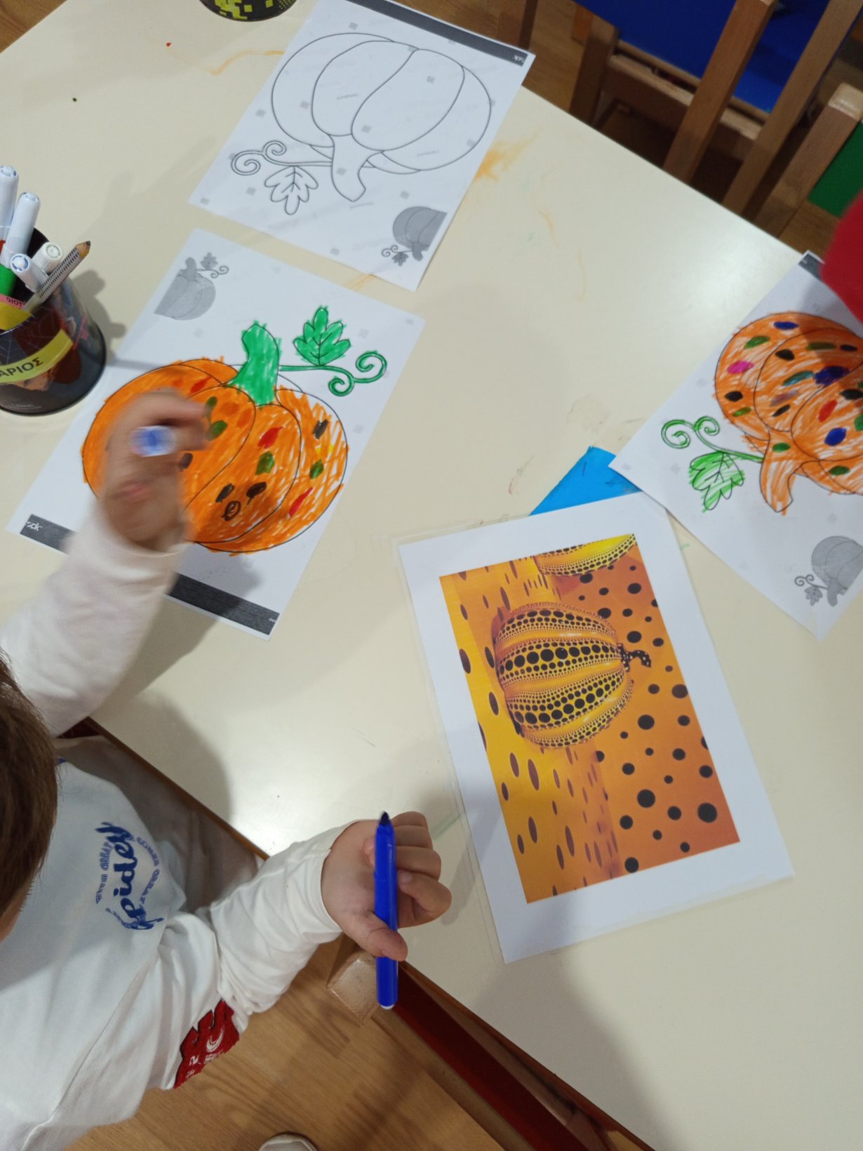 Μιλήσαμε για την Γιαπονέζα καλλιτέχνιδα Γιαγιόι Κουσάμα, η οποία είναι πολύ γνωστή σύγχρονη εικαστικός, διάσημη για τα έργα της με έντονα χρώματα και μοτίβα από βούλες(πουά). Ένα από τα πιο γνωστά της θέματα είναι οι κολοκύθες με βούλες, που αγαπούν πολύ και τα παιδιά.