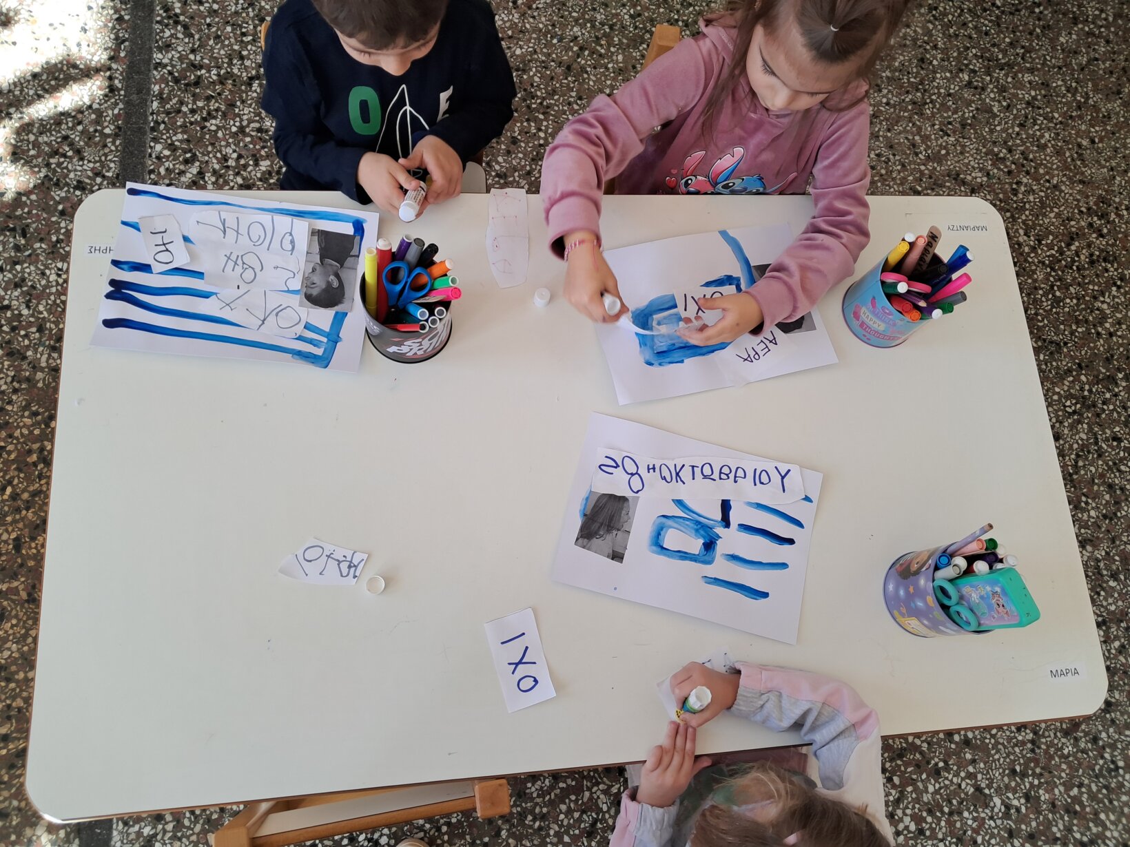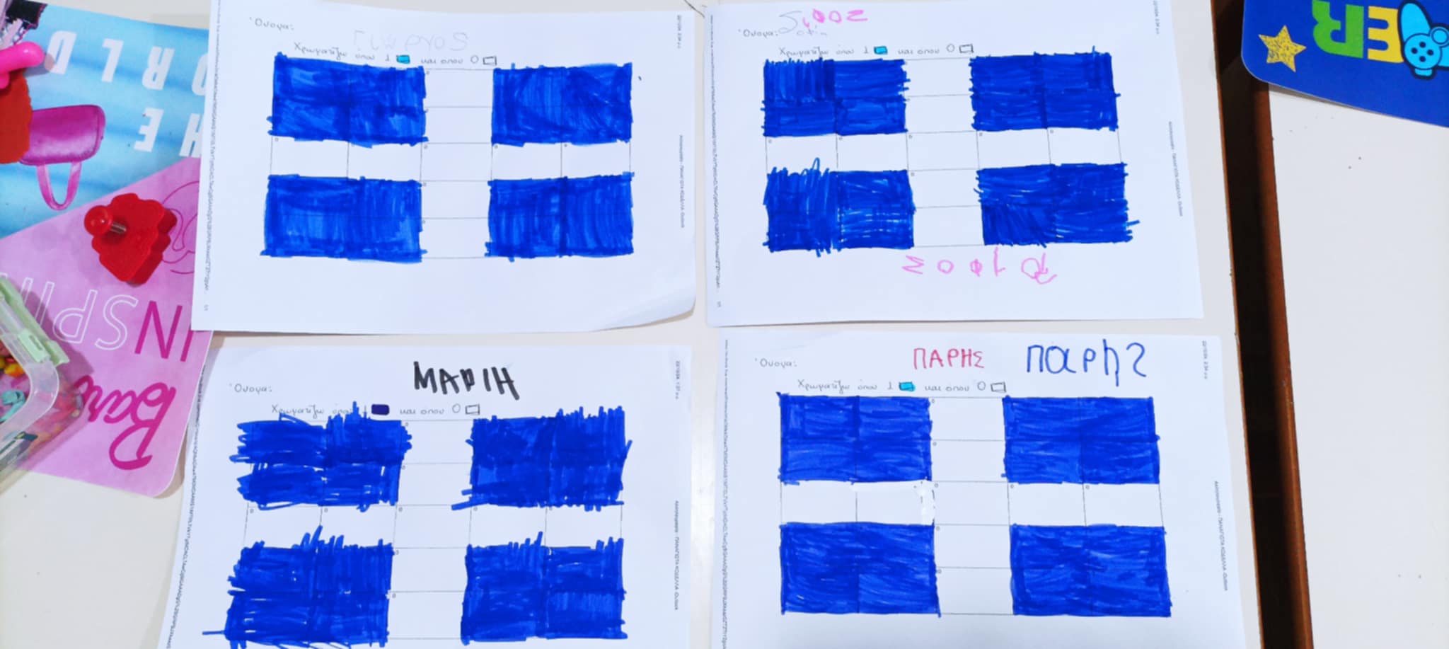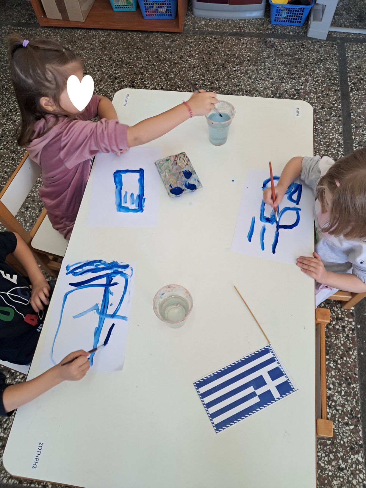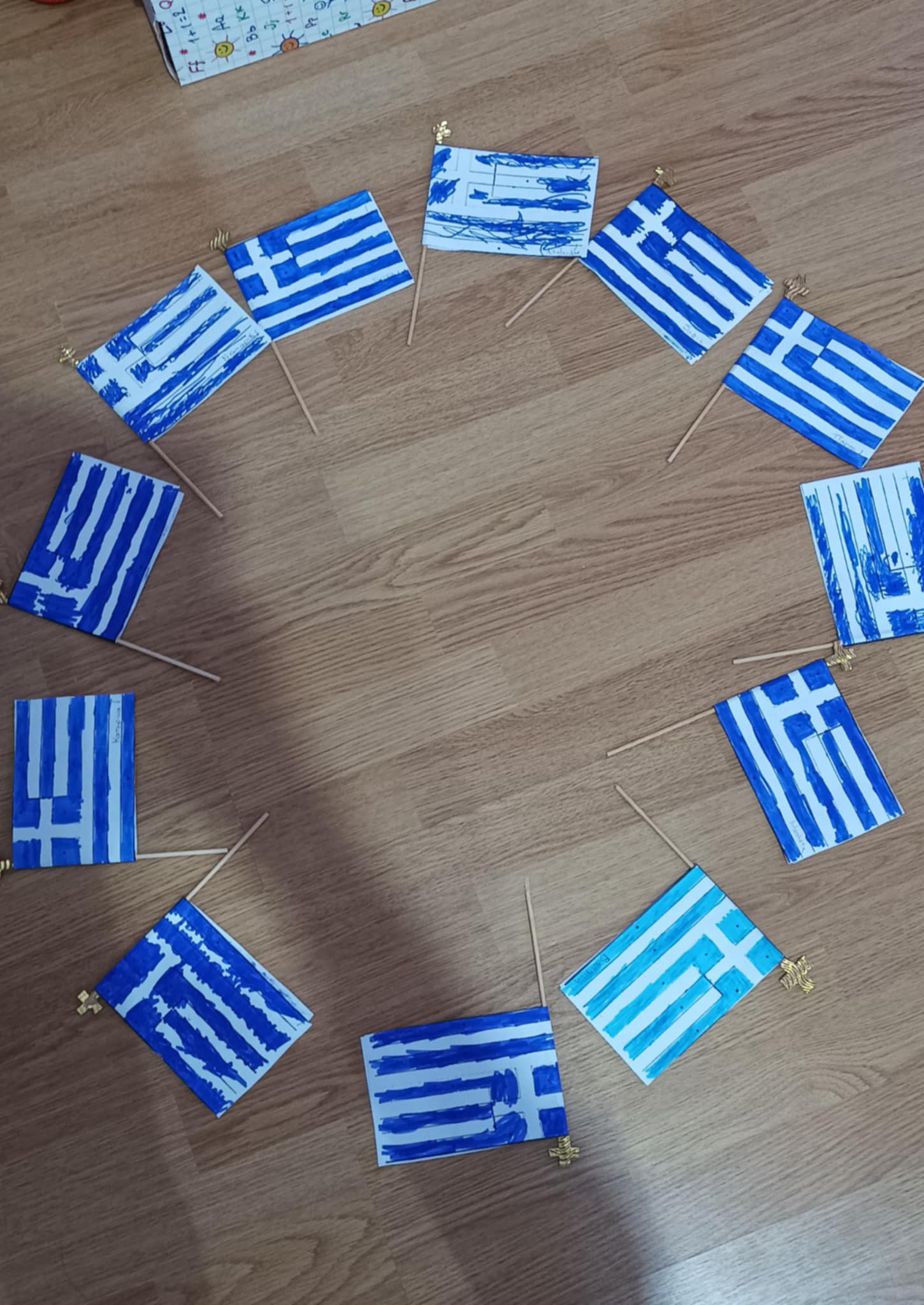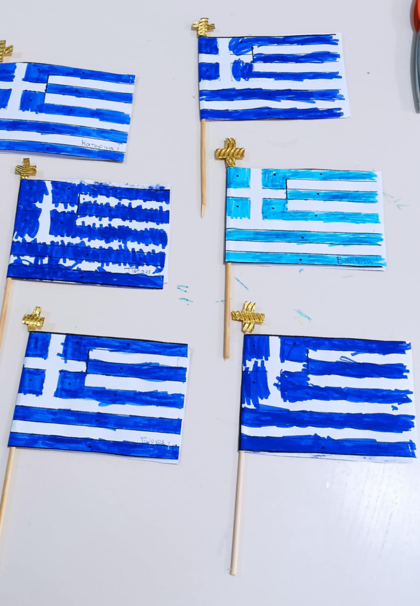 Μιλήσαμε για την Ελληνική μας Σημαία, μάθαμε τον Εθνικό μας Ύμνο, την ζωγραφίσαμε, την κατασκευάσαμε.