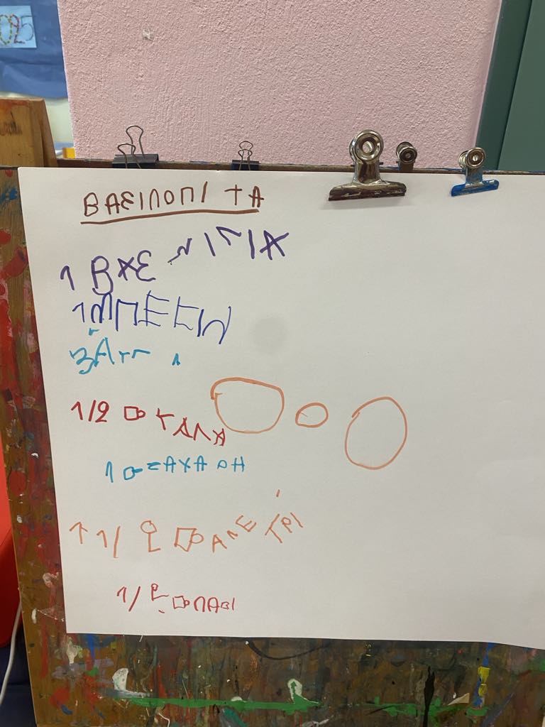 Τέλος δε θα μπορούσε να λείπει η κοπή της καθιερωμένης Βασιλόπιτας την οποία φτιάξαμε μαζί με τα παιδιά στο σχολείο αφού πρώτα γράψαμε τη συνταγή! Η τυχερή μαθήτρια που βρήκε το “φλουρί”, κέρδισε το δώρο που ήταν ένα παραμύθι το οποίο διαβάσαμε στην τάξη για να το ακούσουν και να το χαρούν όλοι!
