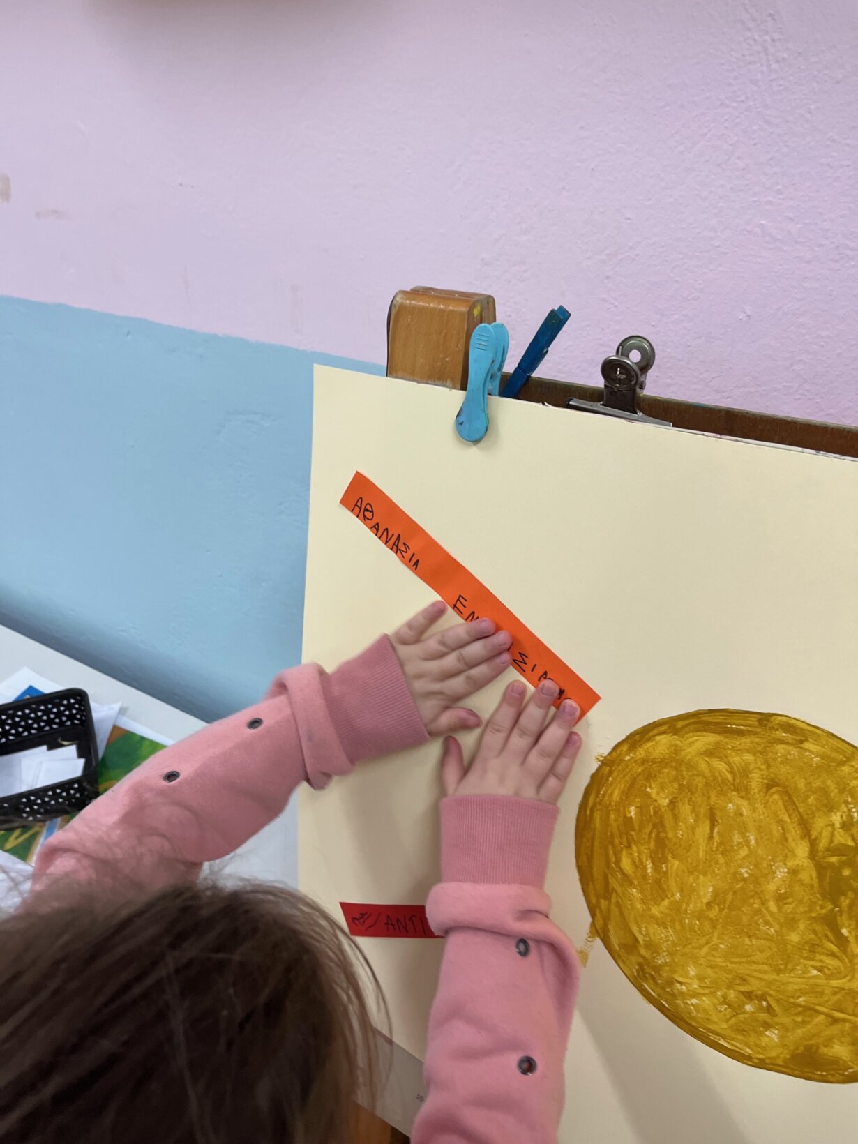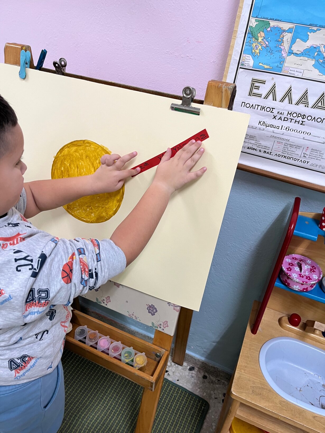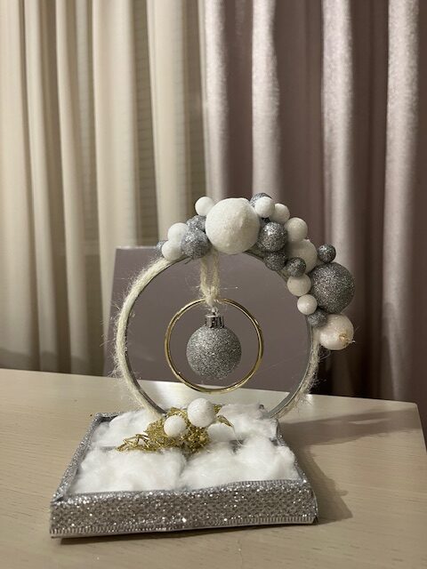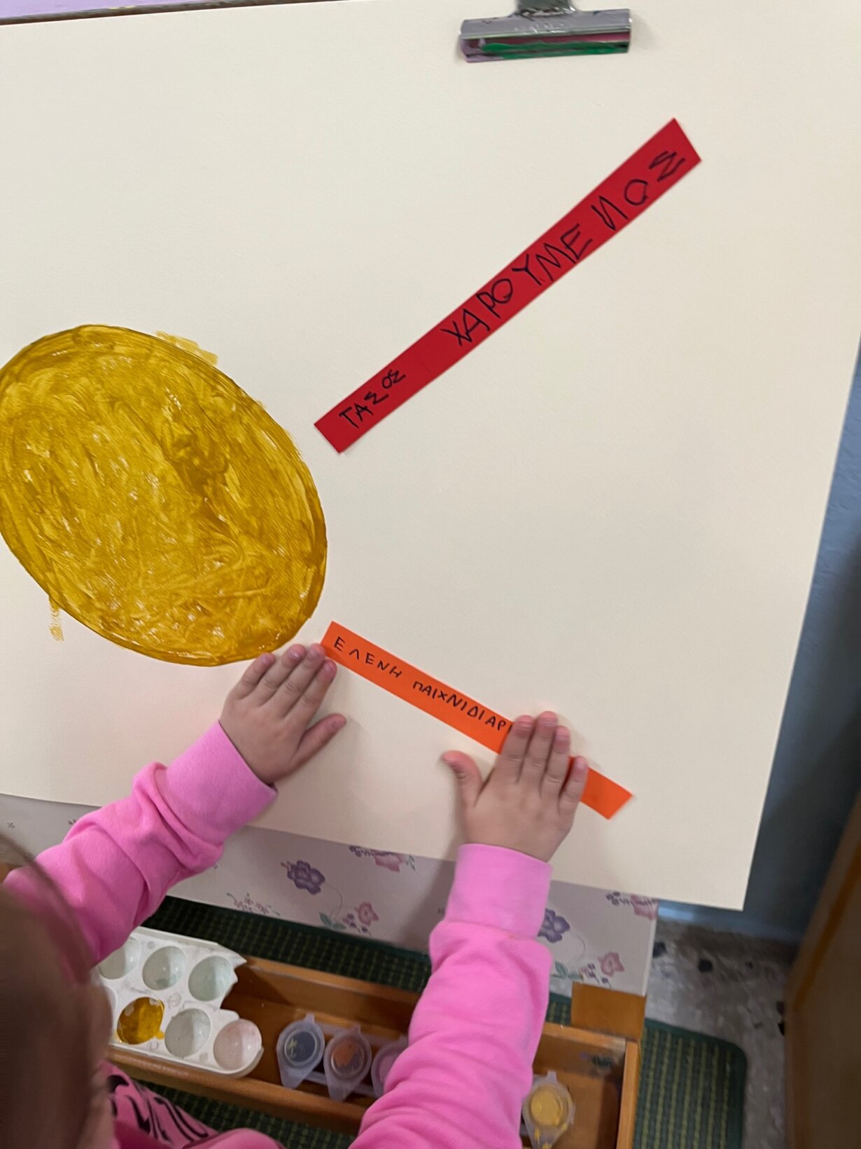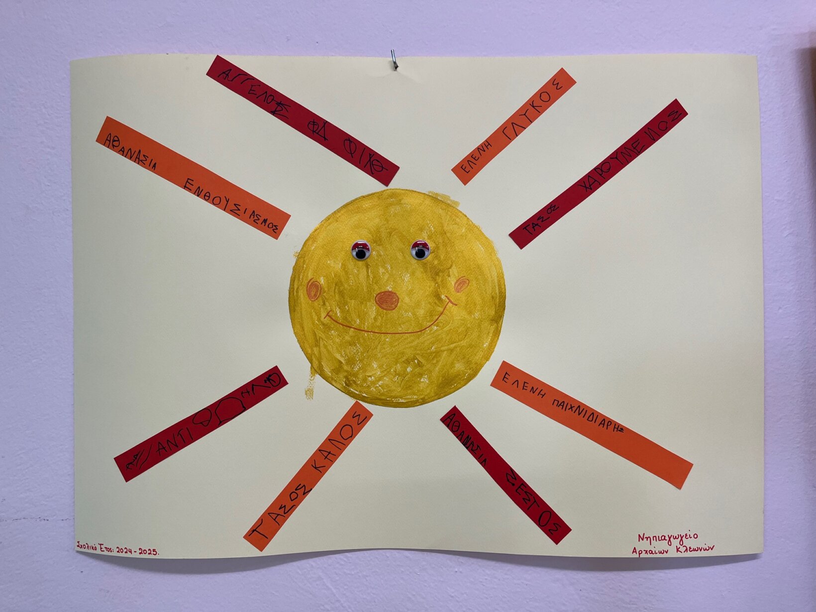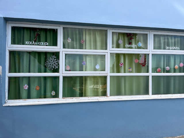 Έπειτα στολίσαμε και με μοναδικές μπάλες τις οποίες φιλοτεχνήσαμε με χρώματα και σχέδια που μας άρεσαν και κατόπιν τις πλαστικοποιήσαμε για να κοσμίσουν τα παράθυρά μας.