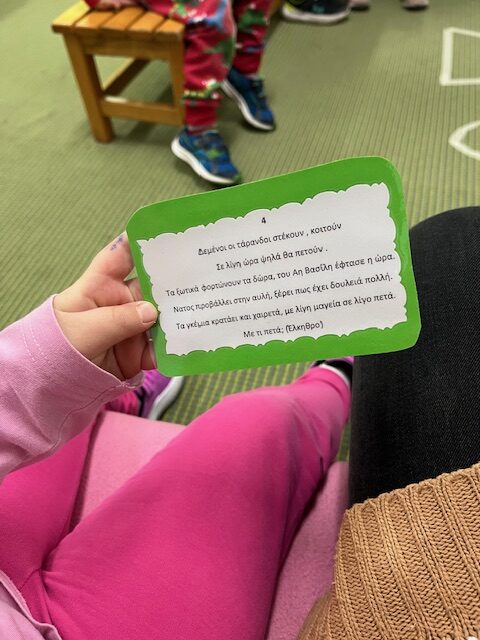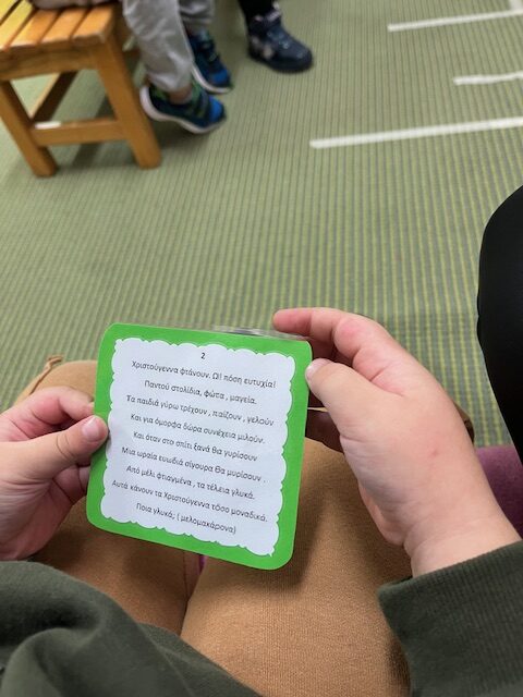 Μαζί με όλα αυτά κάθε μέρα το πρωί, πηγαίναμε στον Άγιο Βασίλη που είχε κάτι να μας πει… Μπήκε λοιπόν για τα καλά στη πρωινή μας τη ρουτίνα με αποτέλεσμα κάθε πρωί με τη σειρά να ψάχνουμε να βρούμε τη λύση στο γρίφο της μέρας ξεχωριστά. Και αυτό μας βοήθησε πολύ να γράψουμε και να μάθουμε πολλές καινούριες πληροφορίες για την μαγική περίοδο των Χριστουγέννων και της Πρωτοχρονιάς.