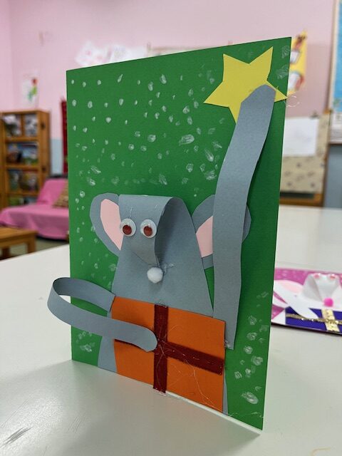 Βέβαια από μια τέτοια περίοδο εορταστική δε θα μπορούσαν να λείψουν και οι χριστουγεννιάτικες κατασκευές. Με αφορμή το αγαπημένο παραμύθι του Ευγένιου Τριβιζά ” Το ποντικάκι που ήθελε να αγγίξει ένα αστεράκι”