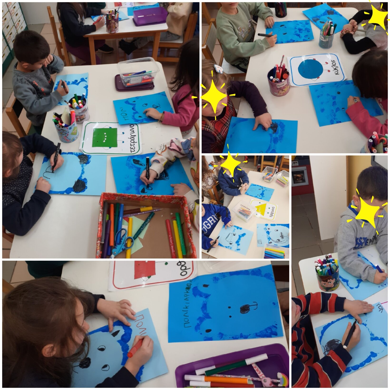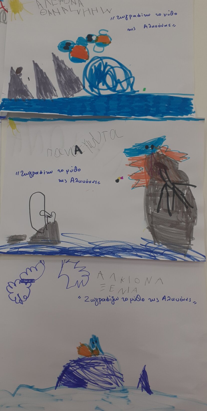 Τέλος, ζωγραφίσαμε και δημιουργήσαμε τους δικούς μας ωκεανούς, περνώντας τα δικά μας μηνύματα και συνθήματα, ώστε να ευαισθητοποιήσουμε, παρακινήσουμε τους γύρω μας να μην ρίχνουν σκουπίδια και πλαστικά στις θάλασσες…
