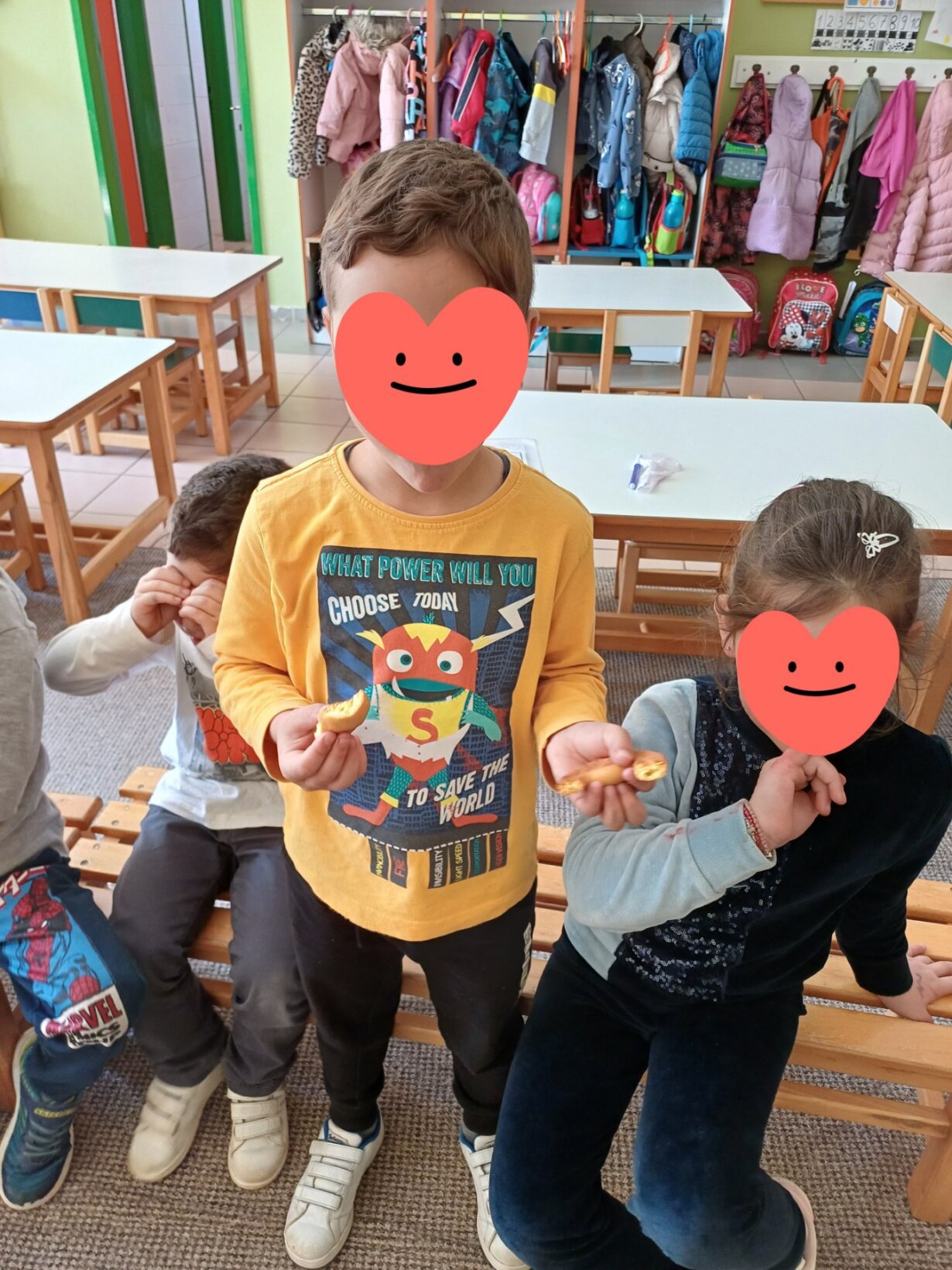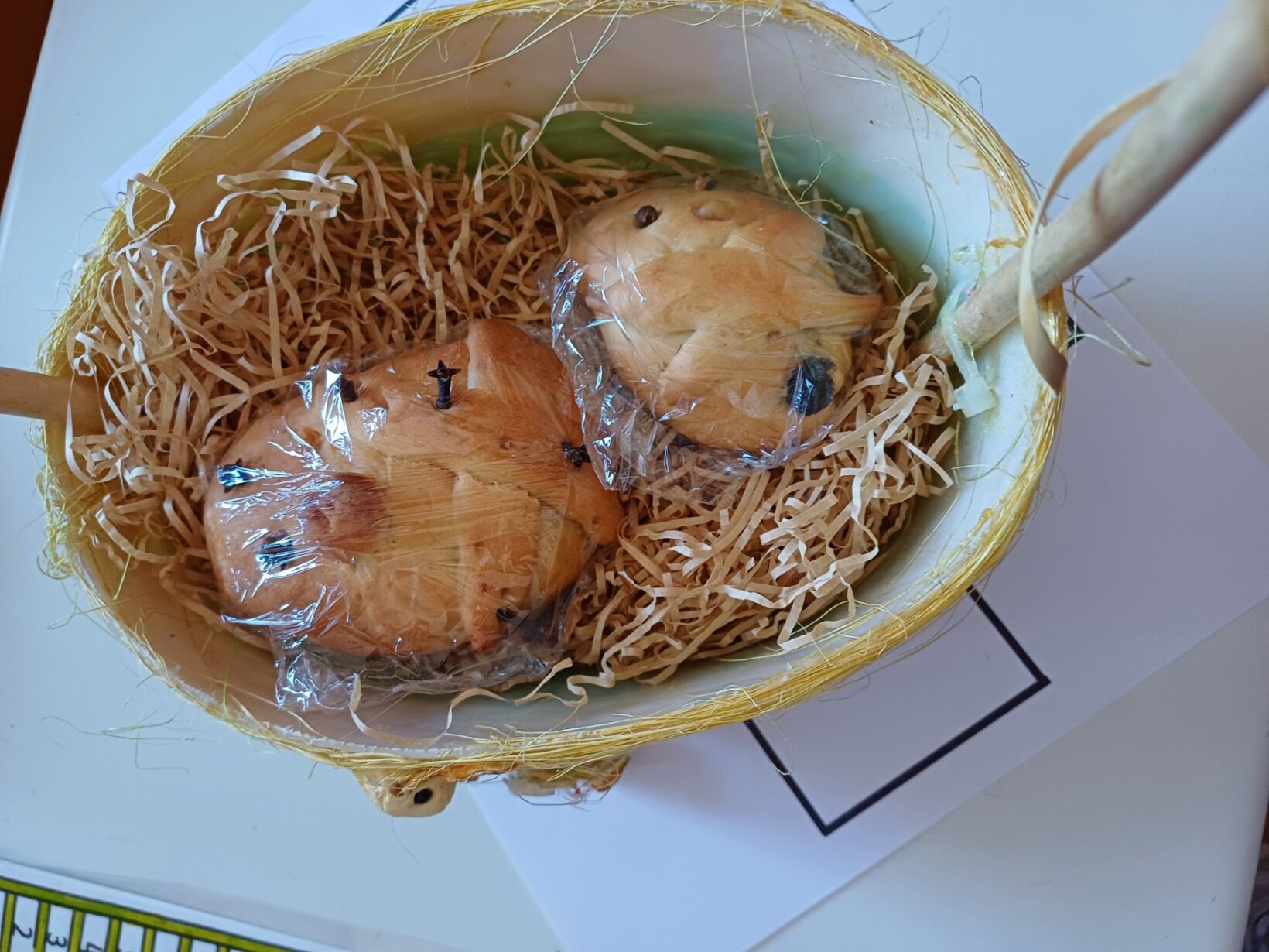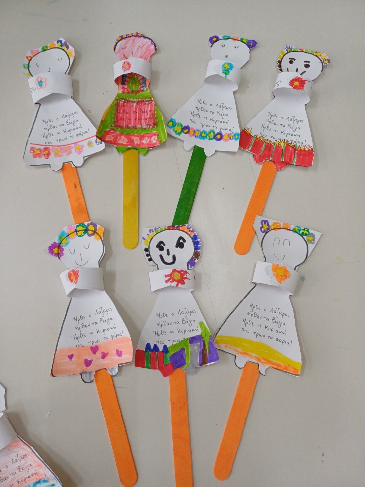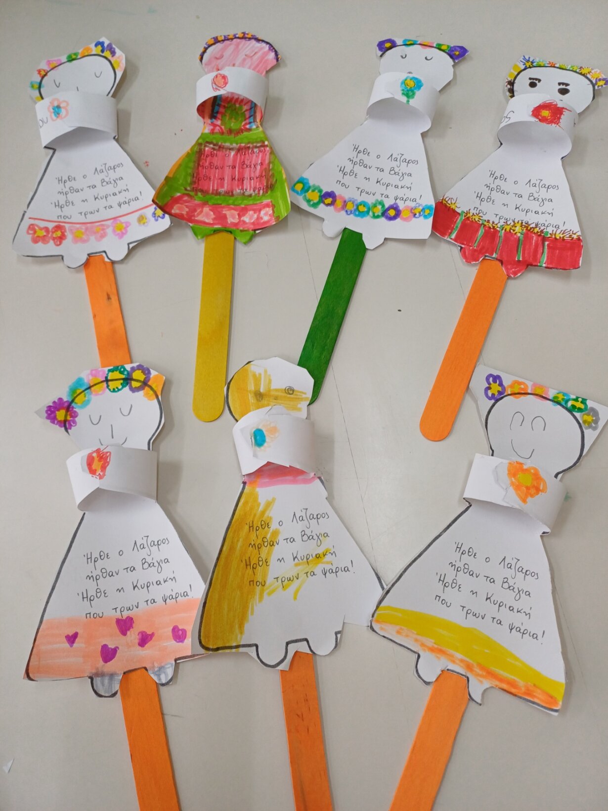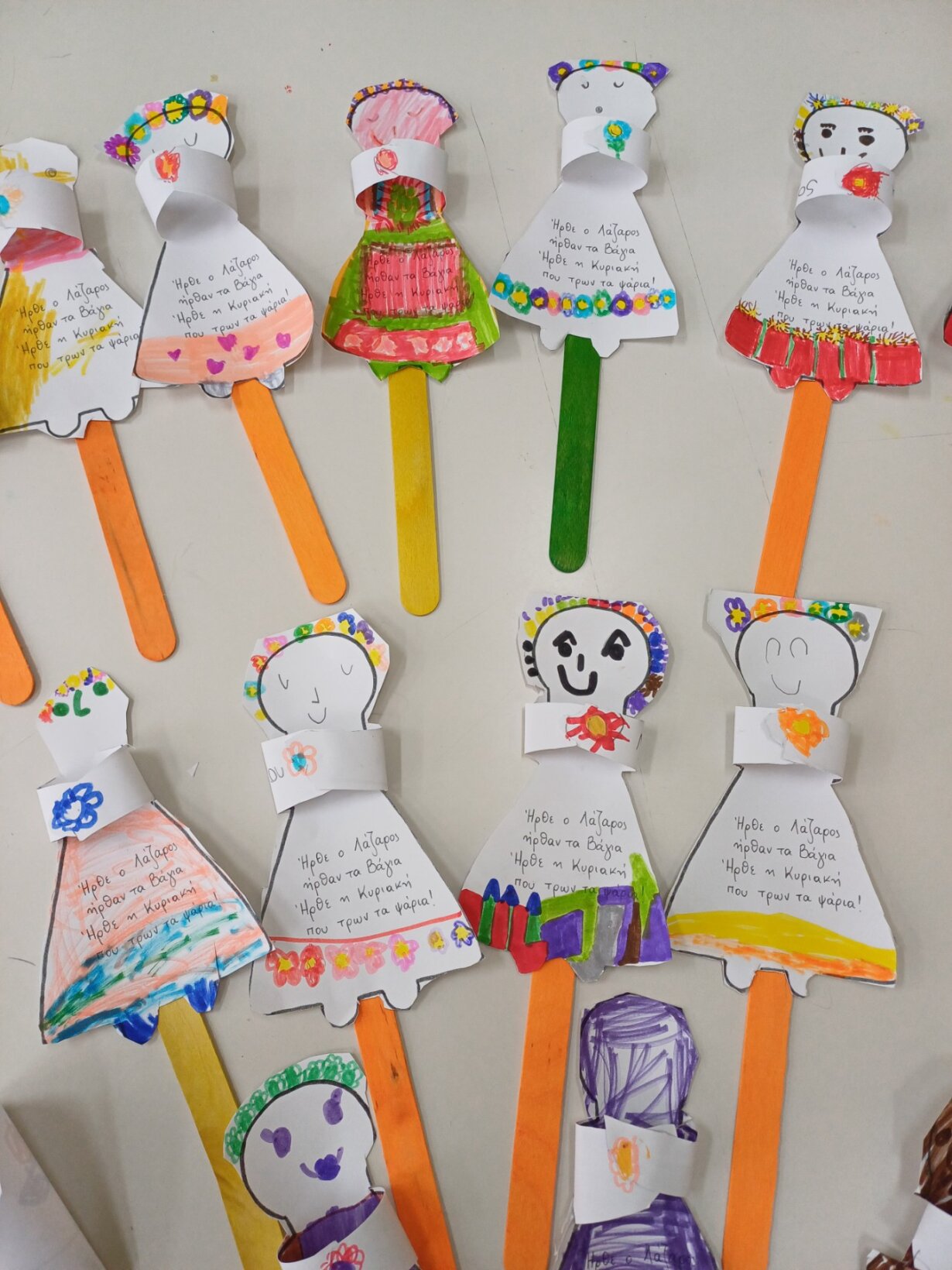 Το τμήμα της κυρίας Σταυρούλας μας χάρισε και δύο Λαζαράκια, τα οποία σύμφωνα με την παράδοση οι νοικοκυρές ζύμωναν για το Σάββατο του Λαζάρου. Όσα παιδιά είχαν τόσα λαζαράκια ζύμωναν!