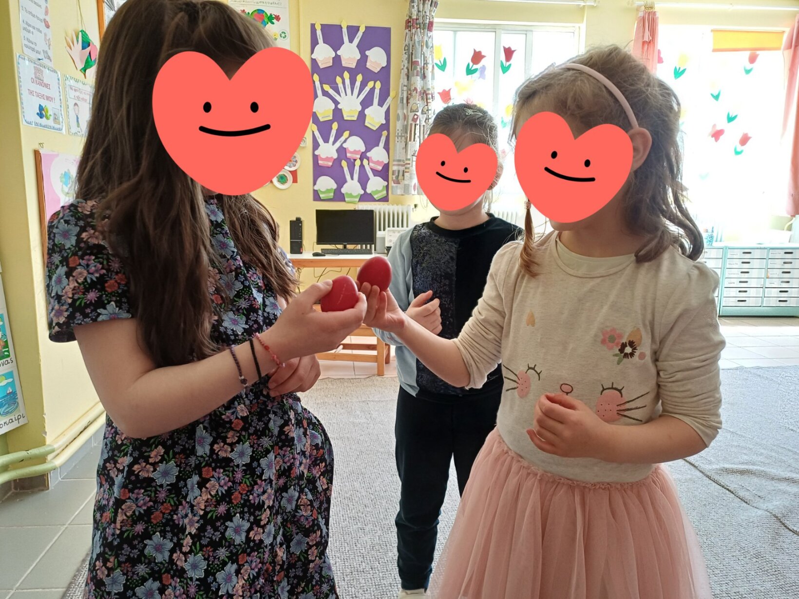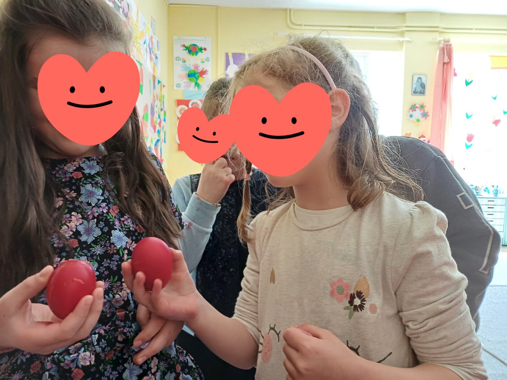 Χαρήκαμε με την διαδικασία αλλά ακόμα περισσότερο με το αποτελέσματα! Την χαρά μας και τα μυστικά της επιτυχίας μας μοιραστήκαμε με τους συμμαθητές μας των άλλων τμημάτων! Ποιό είναι το μυστικό μας για το ωραίο κατακόκκινο χρώμα των αυγών μας; Η αγάπη είναι! Ό,τι κάνεις με αγάπη σίγουρα πετυχαίνει!