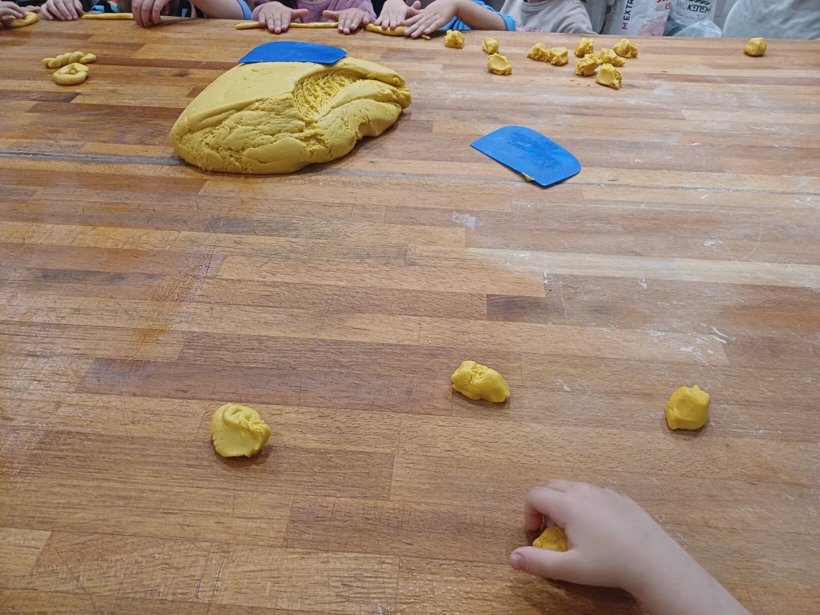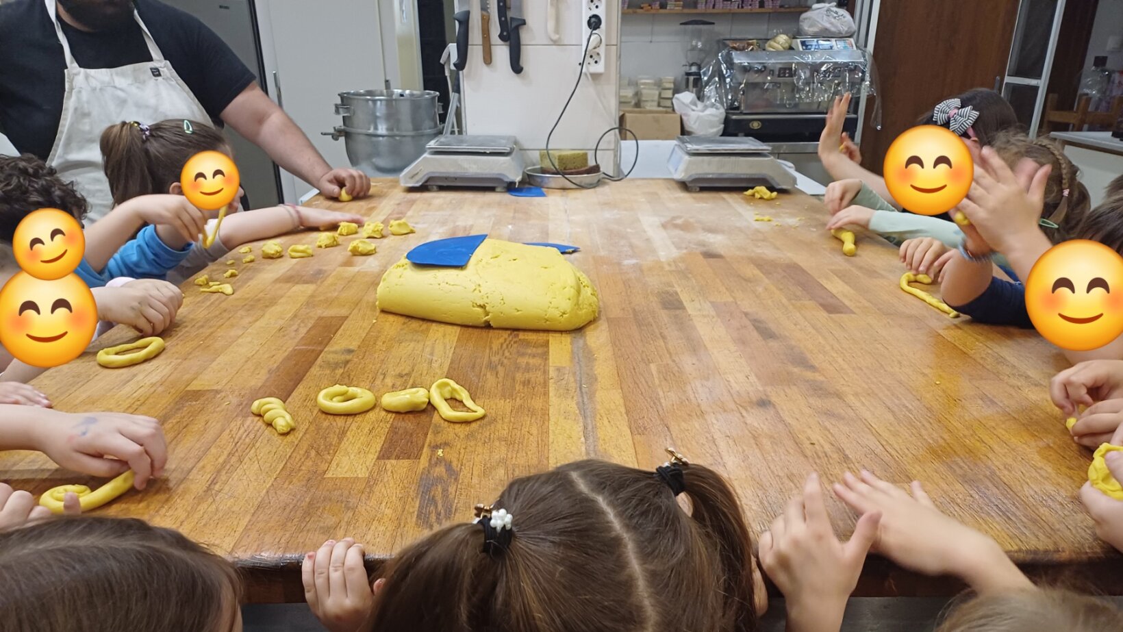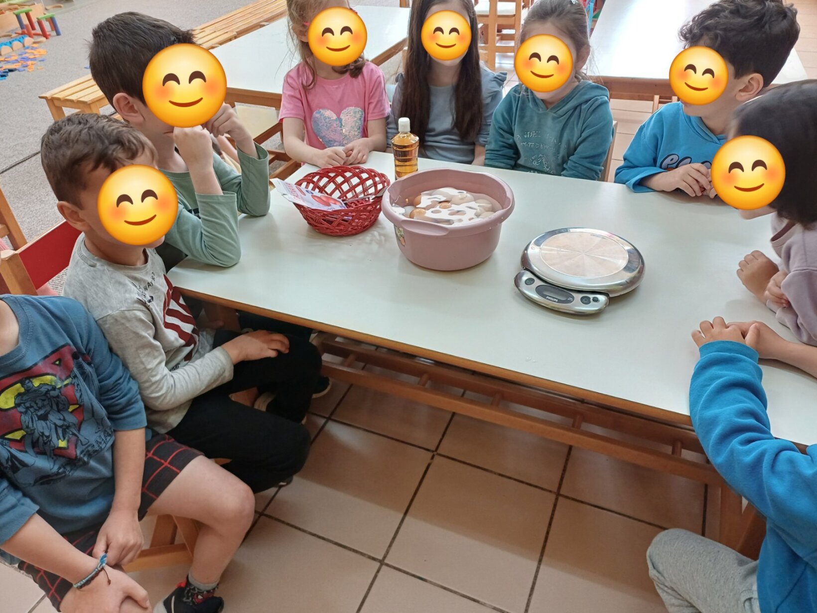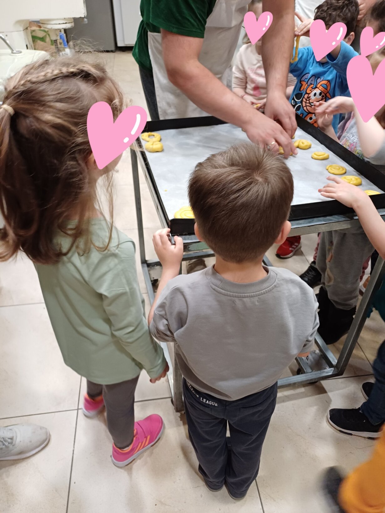 Οι ημέρες προχωρούν και ξεκινούν οι δράσεις μας και εκτός σχολείου! Προκειμένου λοιπόν να γνωρίσουμε την διαδικασία παραγωγής πασχαλινών εδεσμάτων επισκεφθήκαμε αρτοποιείο της περιοχής μας! Σε ένα ευχάριστο κλίμα οι μαθητές μας ζύμωσαν κουλουράκια και ξεναγήθηκαν στο εργαστήριο! Με την ολοκλήρωση της επίσκεψης τα παιδιά προσέφεραν την κάρτα που είχαμε ετοιμάσει για να ευχαριστήσουμε την κυρία Σία που μας υποδέχτηκε με ιδιαίτερη χαρά! Ένα κέρασμα περίμενε τα παιδιά με την ολοκλήρωση της επίσκεψης και μια αναμνηστική φωτογραφία που θα μας θύμιζε την υπέροχη πασχαλινή μας δράση!