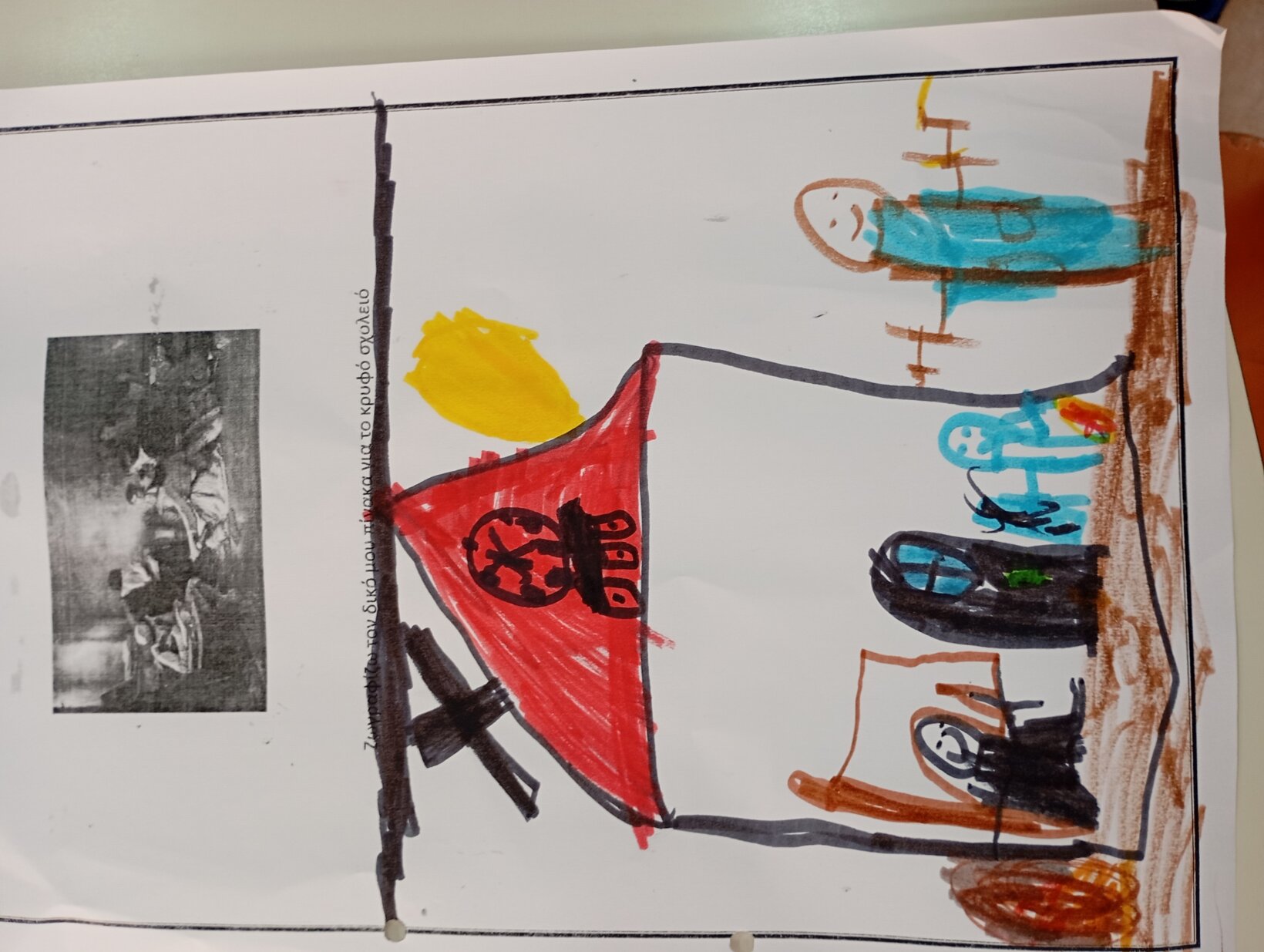 Μέσα από τον πίνακα του Νικόλαου Γύζη , μιλήσαμε για το κρυφό σχολειό. Ζωγραφίσαμε τη δική μας εκδοχή του πίνακα. Συγκρίναμε το δικό μας σχολείο με το σχολείο εκείνης της εποχής.