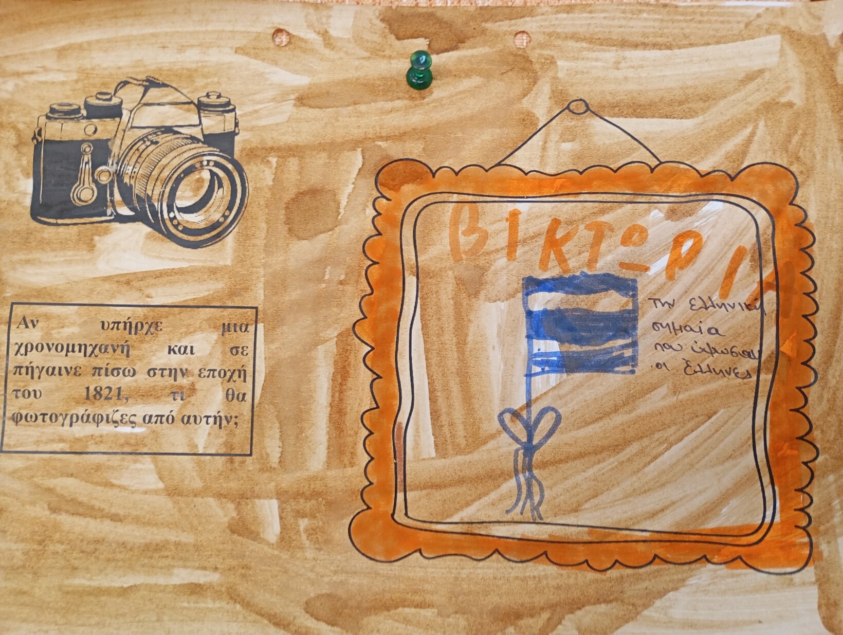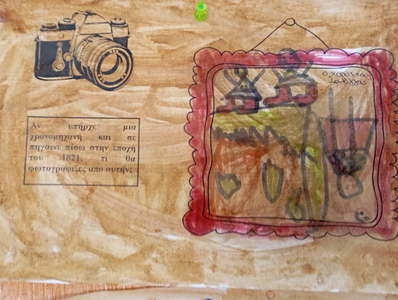 Συμπληρώσαμε το παρακάτω φύλλο εργασίας ” Αν υπήρχε μια χρονομηχανή που θα σε πήγαινε στην εποχή του 1821 τι θα φωτογράφιζες από εκείνη;”.