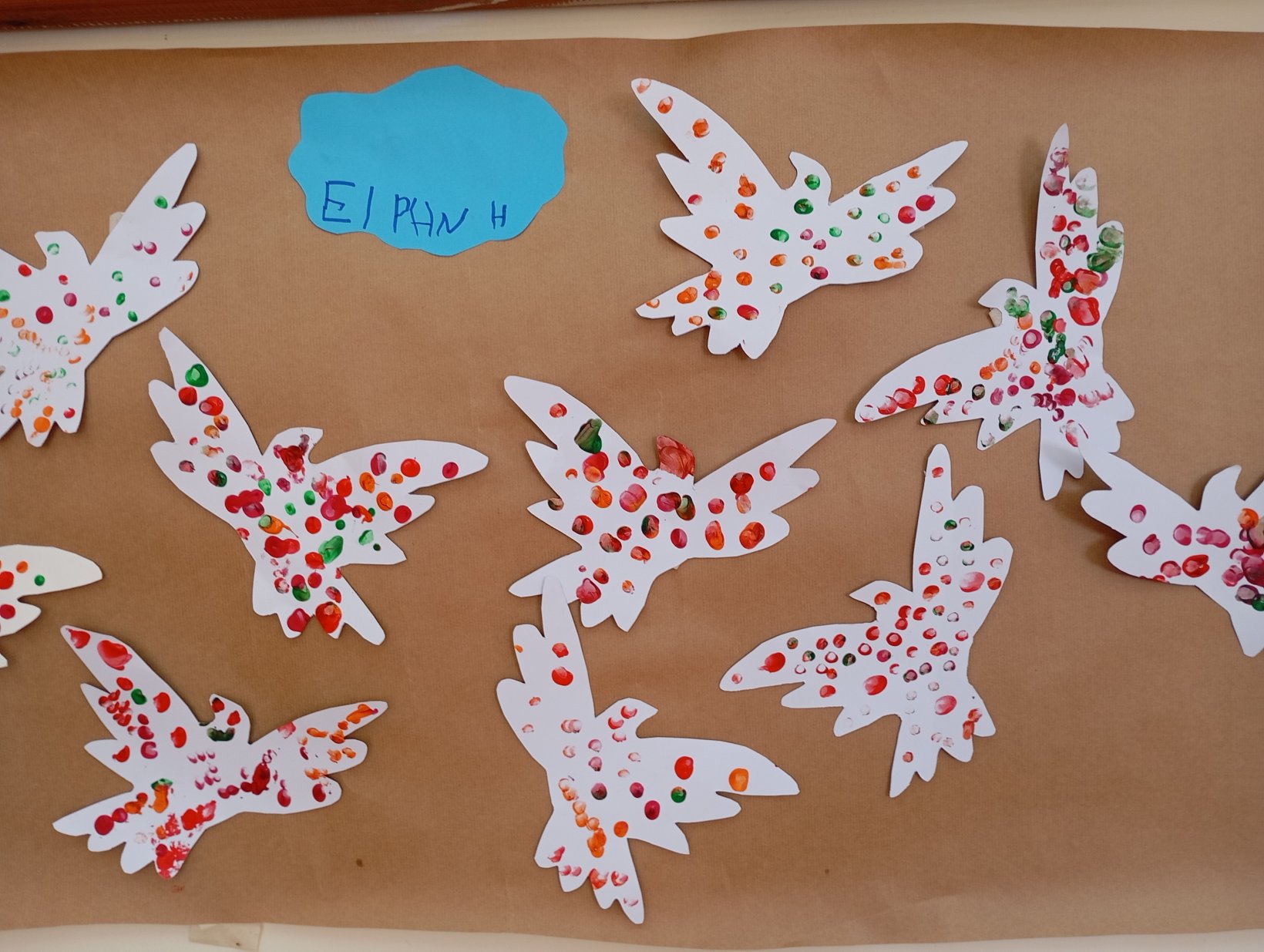 Επεξεργαστήκαμε ακόμη έναν πίνακα του Picasso ” Το περιστέρι της ειρήνης”‘. Συζητήσαμε τι σημαίνει ειρήνη και ποιες εικόνες μας έρχονται στο μυαλό και τις ζωγραφίσαμε. Φτιάξαμε τα δικά μας περιστέρια και τα αφήσαμε να πετάξουν και να μεταφέρουν το μήνυμα της ειρήνης.