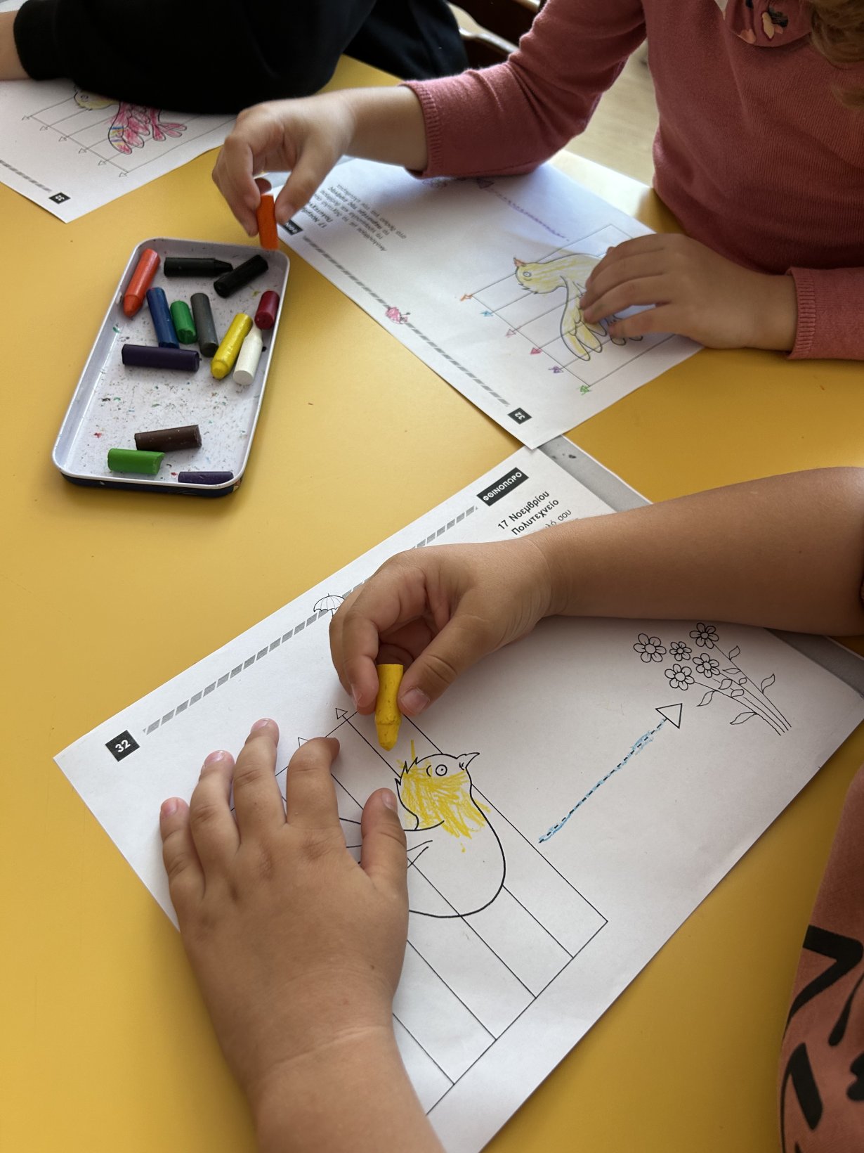 Με αφορμή την 28η Οκτωβρίου, τα παιδιά δημιουργούν το δικό τους περιστέρι της ειρήνης με αποτύπωμα παλάμης. Μέσα από τη βιωματική αυτή δράση εκφράζουν το μήνυμα “Όχι στον πόλεμο – Ναι στην Ειρήνη!”, αναπτύσσοντας την ενσυναίσθηση, τον σεβασμό και την αγάπη για τον συνάνθρωπο.