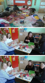 Χριστουγεννιάτικο bazaar Γονείς και νήπια εργάζονται στο νηπιαγωγείο για το χριστουγεννιάτικο bazaar.