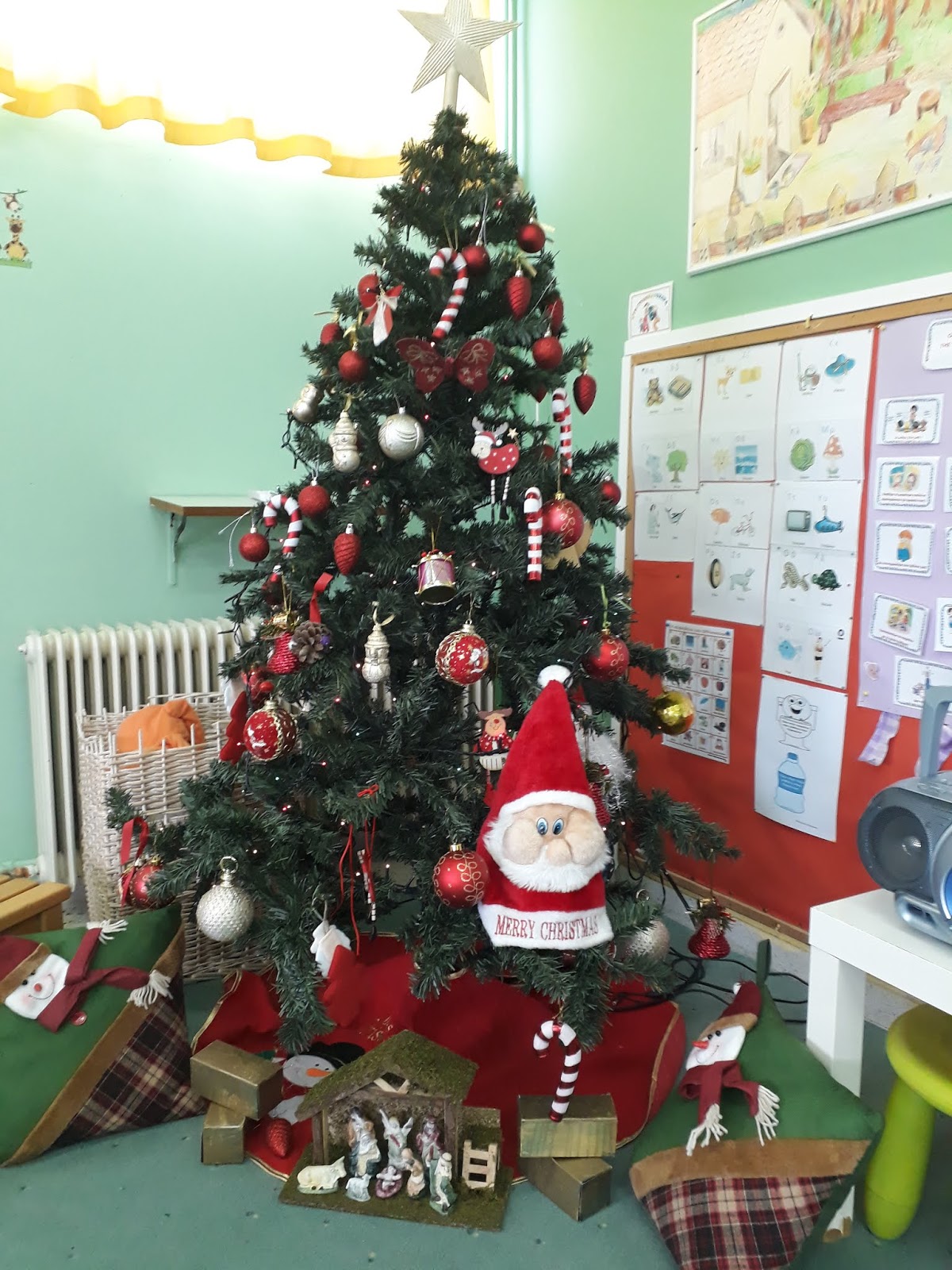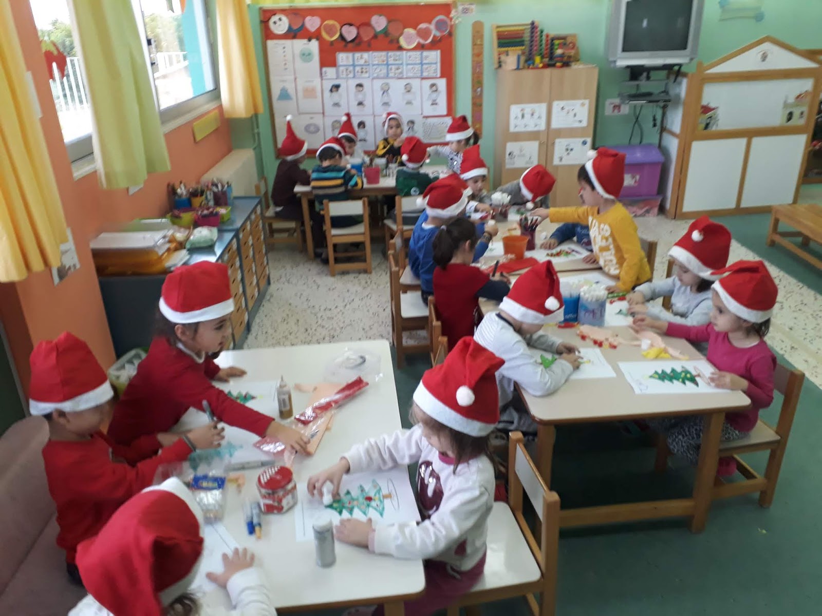 Η αντίστροφη μέτρηση για τη χριστουγεννιάτικη γιορτή μας ξεκίνησε………… Διακοσμήσαμε το χριστουγεννιάτικό μας δέντρο, όπως το έθιμο το καλεί…. αλλά και την ελιά μας, σύμφωνα με το αρχαιοελληνικό έθιμο της: ειρεσιώνης Φορέσαμε τα σκουφάκια μας , πήραμε ψαλίδια και μπογιές και αρχίσαμε τις χριστουγεννιάτικες κατασκευές…. και συνεχίζουμε…… σε χριστουγεννιάτικο κλίμα !!!
