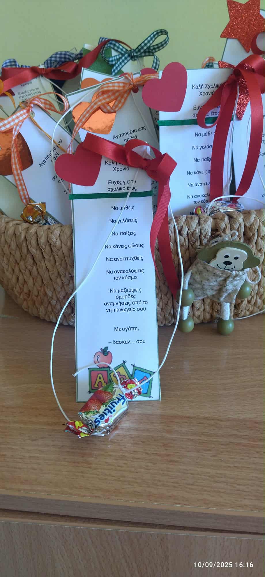 Όλα όμορφα  στολισμένα με μεράκι , οι χώροι του σχολείου μας , τα δωράκια καλωσορίσματος για τους  μικρούς μας μαθητές και την καρδιά μας γεμάτη με προσμονή για την πρώτη μας συνάντηση τις αγκαλιές και τα χαμόγελα με τους  μαθητές μας!