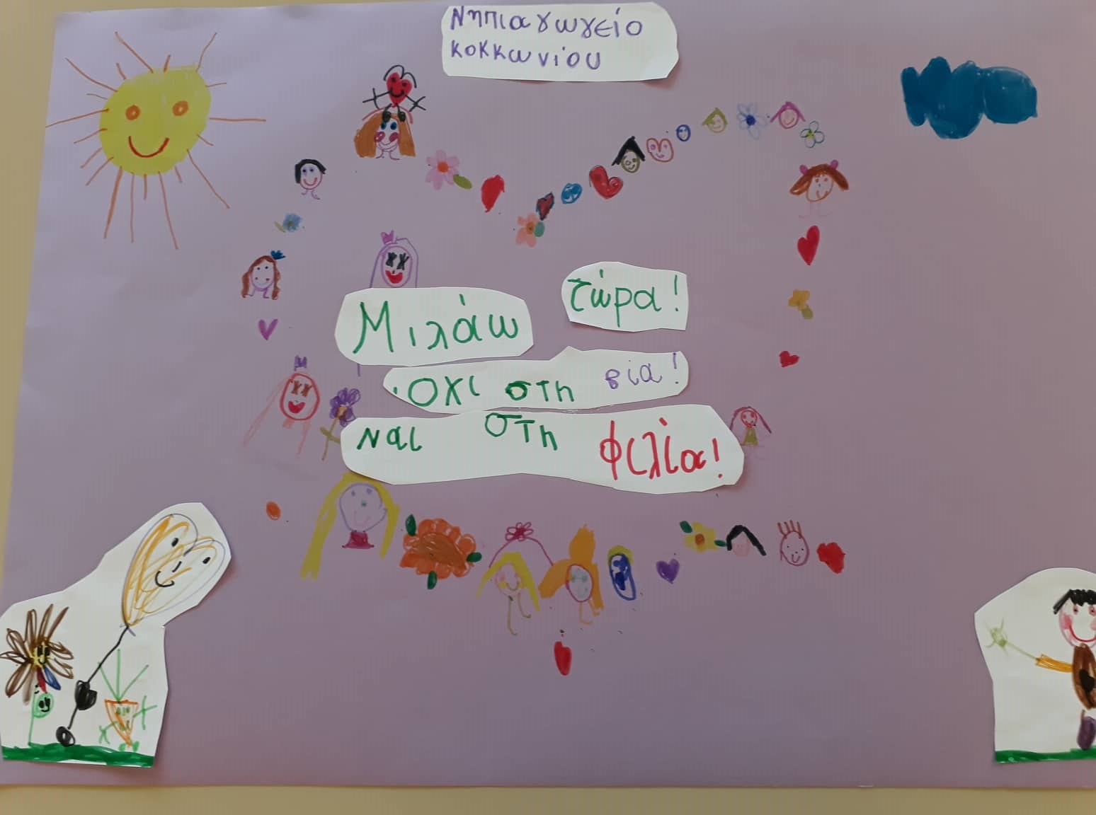 Σχολικός Εκφοβισμός Αφίσα ενάντια στον σχολικό εκφοβισμό με την οποία το Νηπιαγωγείο Κοκκωνίου πήρε μέρος στο Σχολικό Διαγωνισμό κατά της βίας.