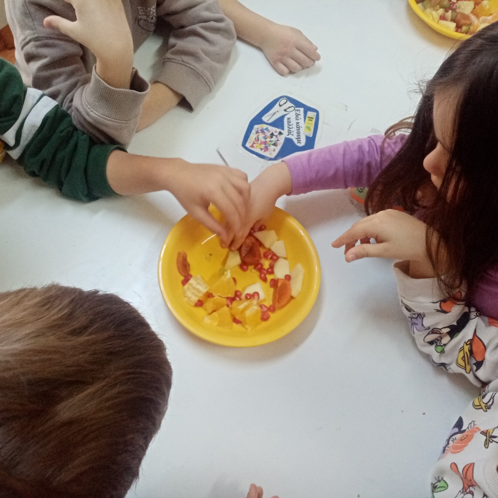 Με τα φρούτα που ανακαλύψαμε φτιάξαμε μια υγιεινή, χορταστική φρουτοσαλάτα.