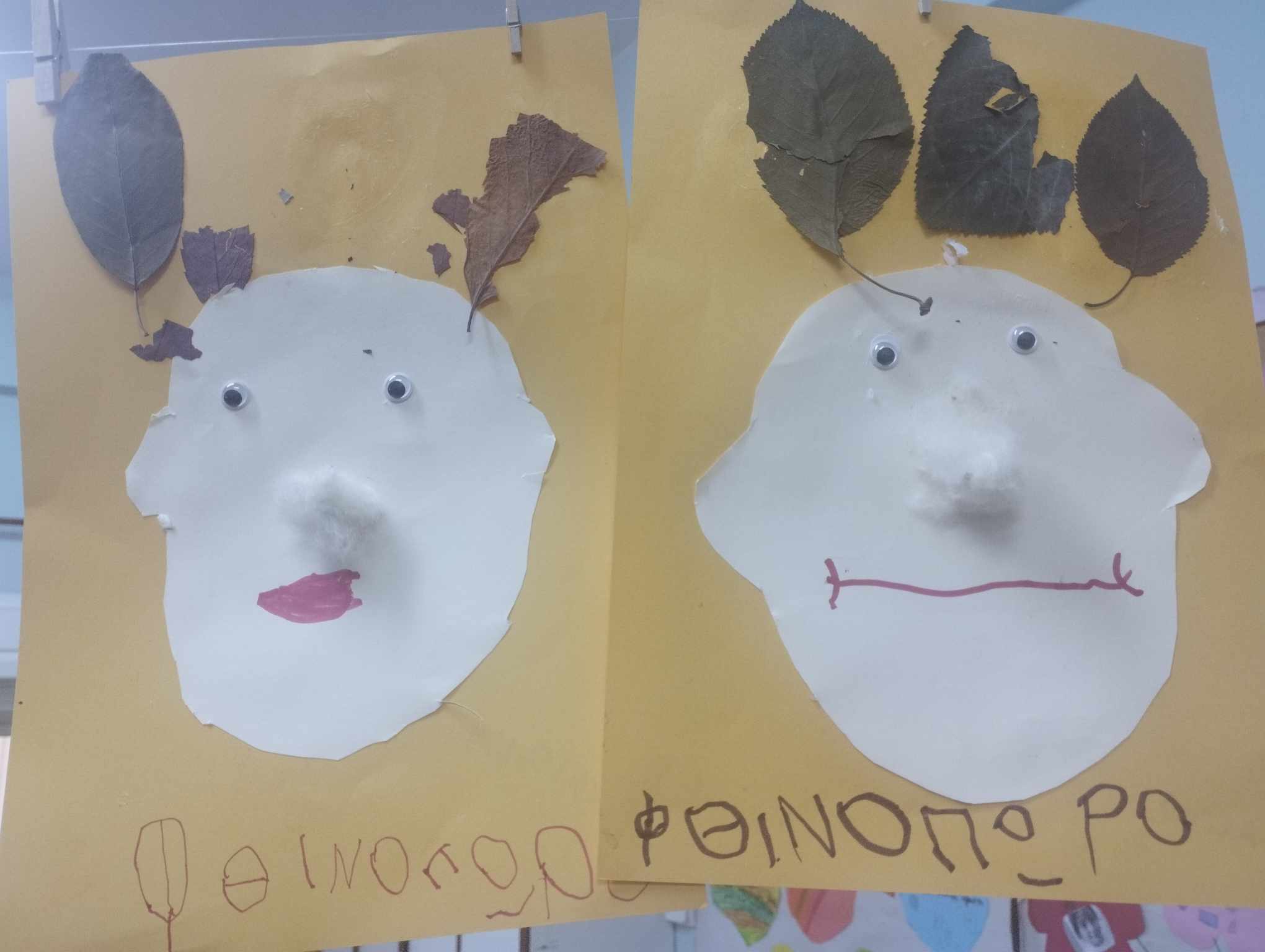 Σχηματίσαμε, όμως και το πρόσωπό μας, μόνο που αντί για μαλλιά τοποθετήσαμε φθινοπωρινά φύλλα.