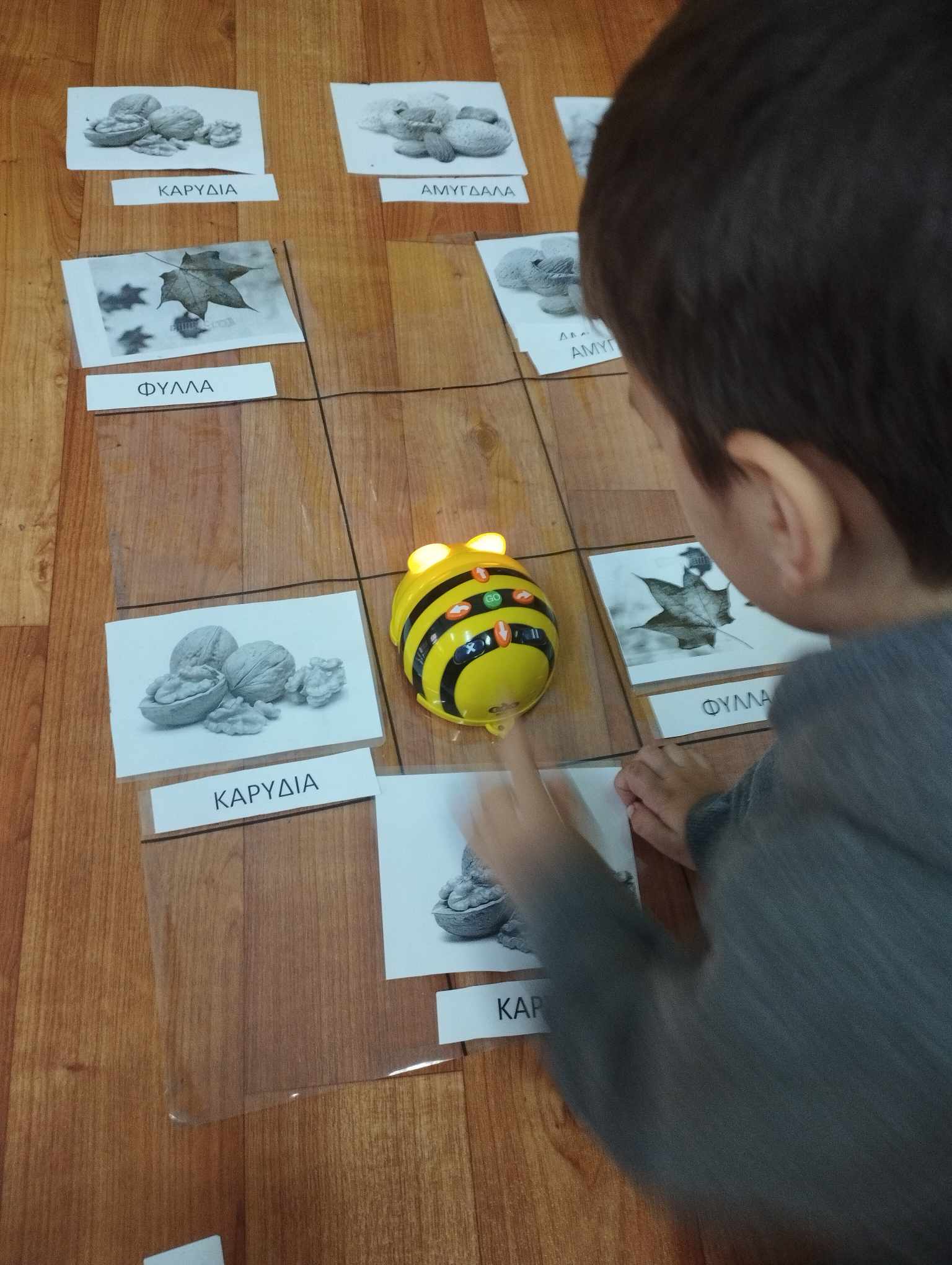 Η μέλισσα ρομπότ beebot μας βοήθησε να ανακαλύψουμε τα αντικείμενα του Φθινοπώρου, αφού την προγραμματίσαμε σωστά.