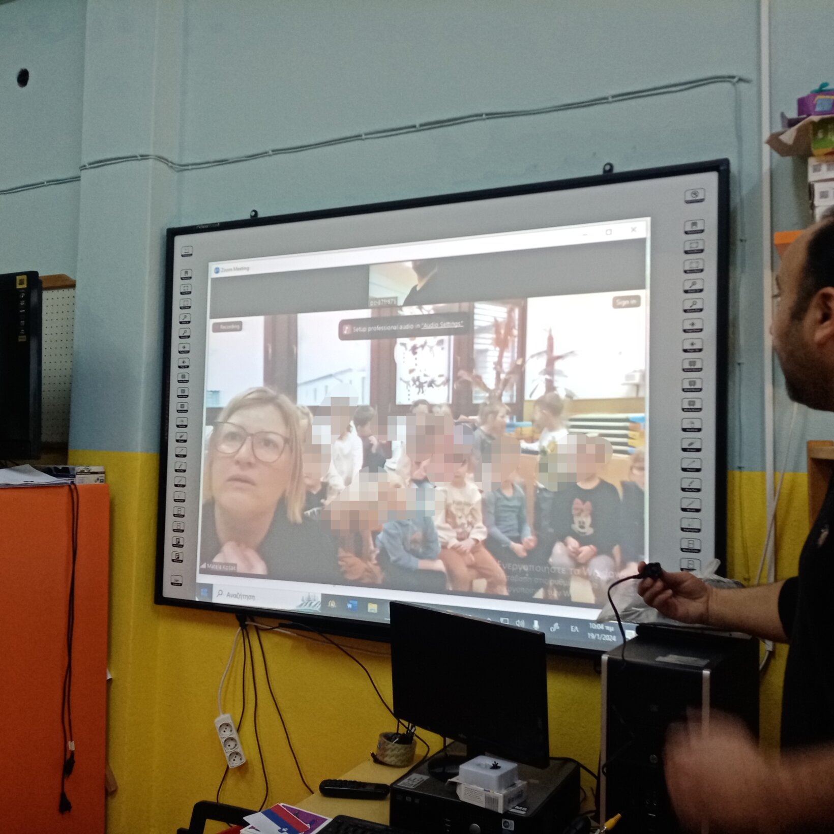 Η κα Μολλά μας περίμενε με χαρά στην είσοδο του σχολείου αγκαλιάζοντας όλα τα παιδιά και δεν μας άφησε λεπτό χωρίς να εξηγεί όλα όσα αφορούσαν το πλανητάριο.