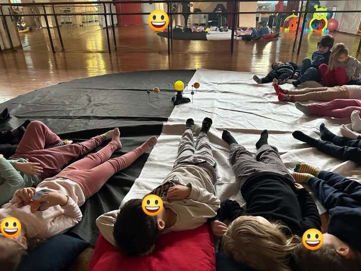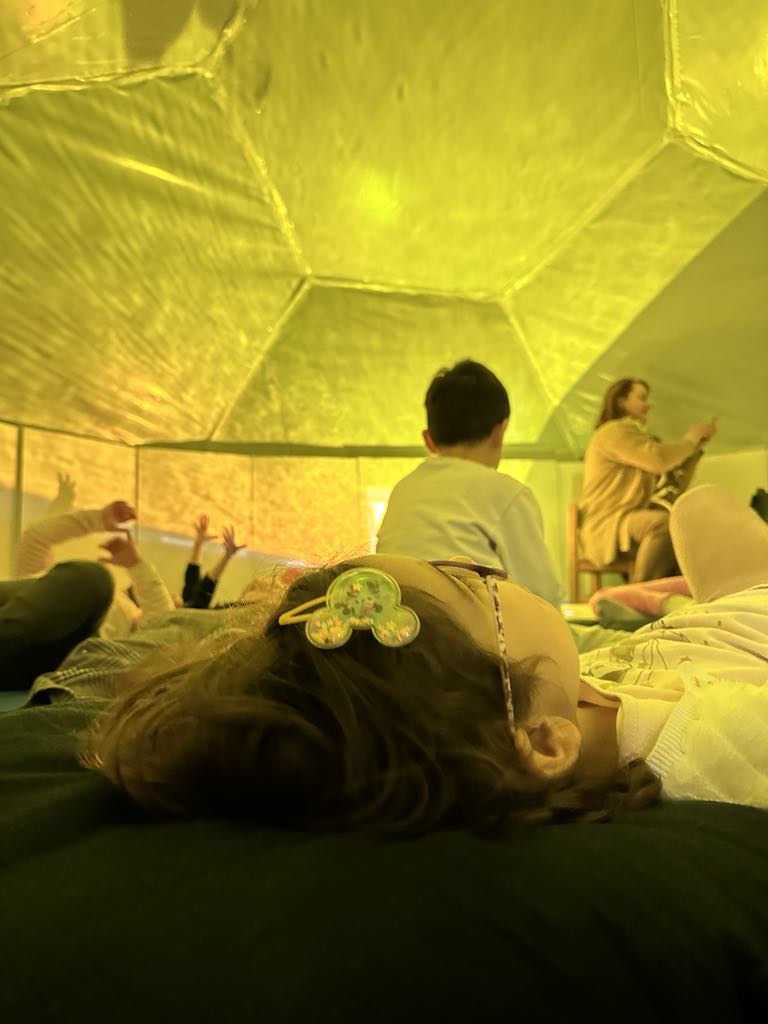 Και φτάσαμε με αγωνία στο πλανητάριο.. Φτιαγμένο με απλά υλικά αλλά με άψογο σχεδιασμό και μεράκι, μας φιλοξένησε και μας αποκάλυψε τα μυστικά του. Είδαμε αστέρια, γνωριστήκαμε με τους πλανήτες, απολαύσαμε ένα φανταστικό ταξίδι στο διάστημα. Κι όλα αυτά με τις οδηγίες της κας Μαρίνας.