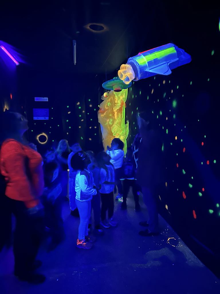 Στη συνέχεια, ξεναγηθήκαμε στον κύριο χώρο του πλανητάριου που βρίσκεται στο υπόγειο του σχολείου, μπαίνοντας μέσα από έναν σκοτεινό αλλά γεμάτο εκπλήξεις τούνελ όπου ήταν λες και ταξιδεύαμε στο ηλιακό μας σύστημα!