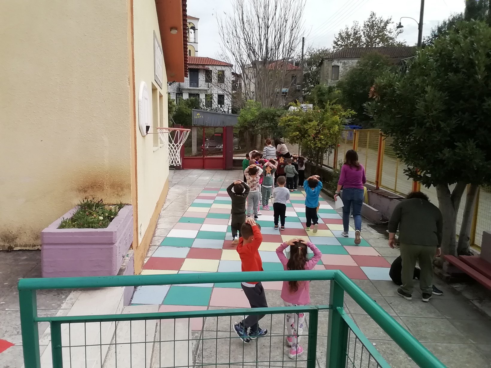 Πραγματοποιήθηκαν στο νηπιαγωγείο μας οι προβλεπόμενες ασκήσεις ετοιμότητας σεισμού, στο πλαίσιο της εκπαίδευσης των παιδιών για την πρόληψη και προστασία σε περίπτωση σεισμού. Μέσα από συζήτηση, προβολές και βιωματικές δραστηριότητες, τα παιδιά έμαθαν τι είναι ο σεισμός, πώς δημιουργείται και κυρίως πώς πρέπει να αντιδρούν πριν, κατά τη διάρκεια και μετά από ένα σεισμικό γεγονός.