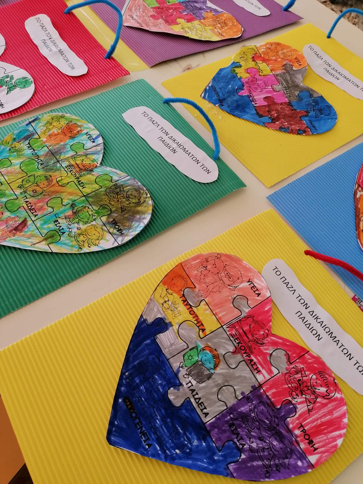 Τέλος, έκοψαν και κόλλησαν την καρδιά με το Παζλ των Δικαιωμάτων των Παιδιών και έφτιαξαν ένα καδράκι με τα βασικά δικαιώματα που πρέπει να έχουν όλα τα παιδιά.