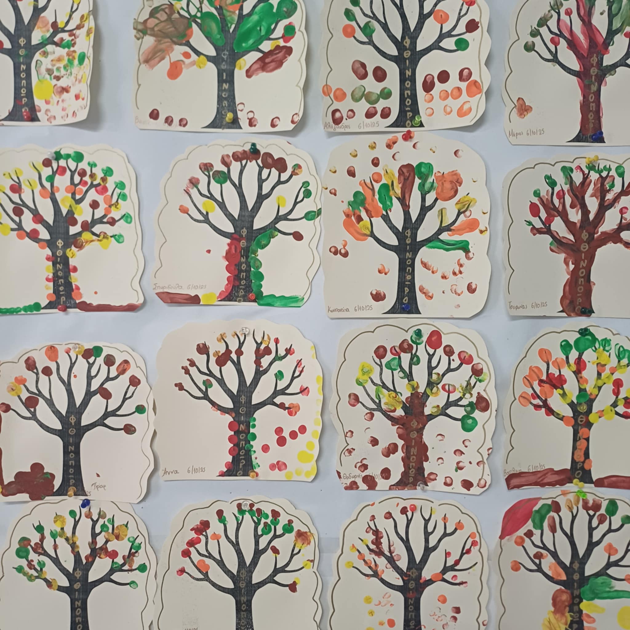 Το Φθινόπωρο έφτασε και γνωρίσαμε τα ιδιαίτερα χαρακτηριστικά του (μήνες, φρούτα και καρποί του φθινοπώρου, η βροχή, τα χρώματα του Φθινοπώρου) μέσα από παραμύθια, εκπαιδευτικά βίντεο, ατομικά ΄φυλλα εργασίας, ατομικές και ομαδικές κατασκευές και φυσικά ομαδικά παιχνίδια.