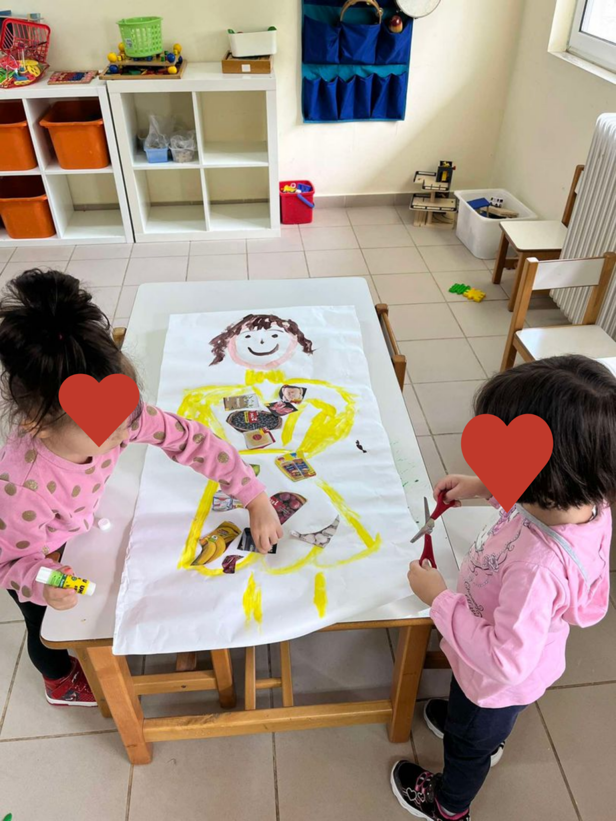 Βασικός μας στόχος είναι η γνωριμία των παιδιών με τις πιο σημαντικές ομάδες τροφών, την έννοια της ισορροπημένης διατροφής και τη σημασία της για τη ζωή μας. Αυτή την εβδομάδα έγινε αναφορά στη λεγόμενη Μεσογειακή Πυραμίδα και στην εννοιολογική αποσαφήνιση της κατανομής των τροφών σε αυτή. Ξεχωρίσαμε τα φρούτα και τα λαχανικά, τα ζωγραφίσαμε, παίξαμε με τα ονόματά τους και τραγουδήσαμε σχετικά τραγούδια.