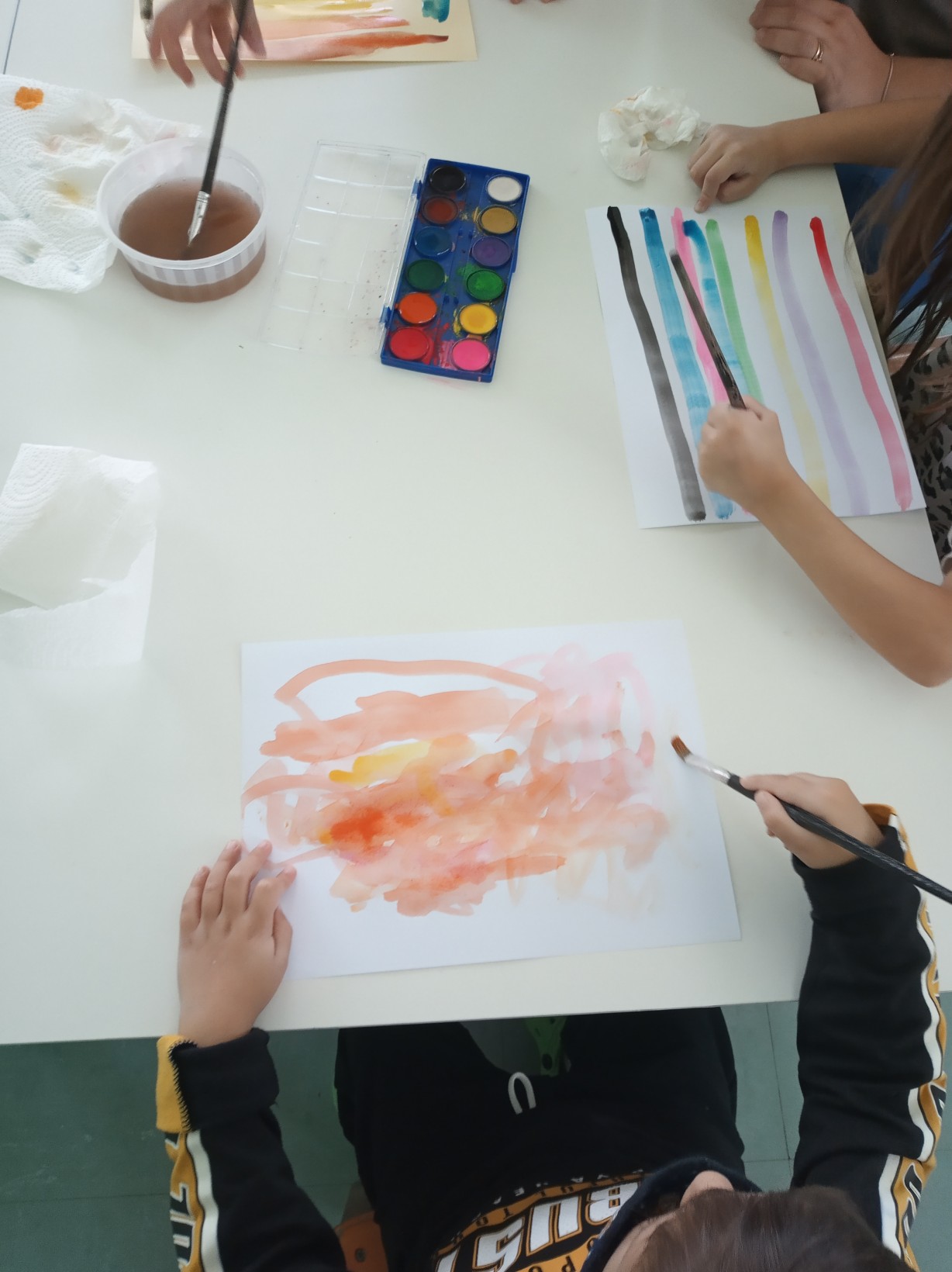 Κάναμε πειράματα με το νερό. Είδαμε ποια πράγματα επιπλέουν στο νερό και ποια πράγματα βυθίζονται . Τα παιδιά διάλεξαν διάφορα πράγματα από την τάξη και τα βούτηξαν σε μία λεκάνη με νερό: