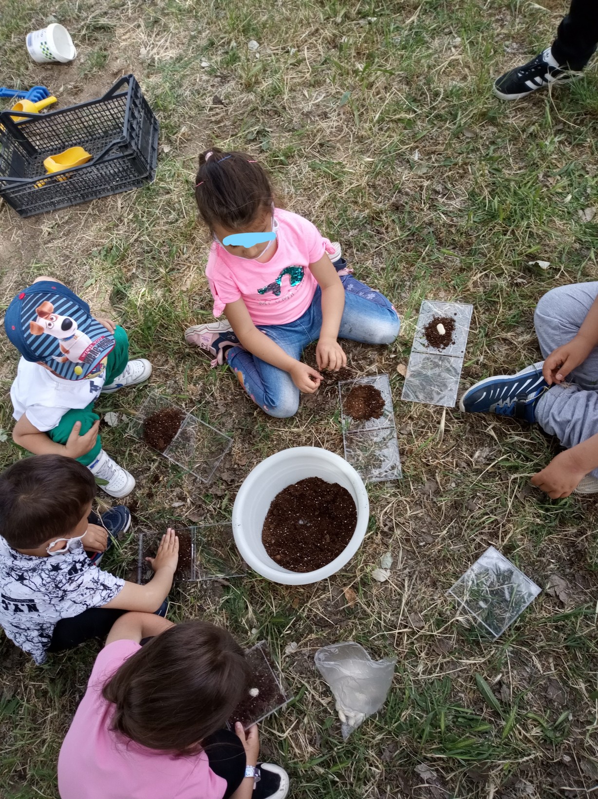 Ένα λουλούδι της αυλής αποτέλεσε το έναυσμα. Πως μεγαλώνει ένα φυτό ; Είδαμε το κύκλο ζωής των φυτών και φυτέψαμε τα δικά μας σποράκια (φασόλια) για να παρατηρήσουμε την εξέλιξη. Παράλληλα μάθαμε ότι τα φυτά χρειάζονται χώμα , ήλιο , νερό και σπόρο για να δημιουργηθούν.