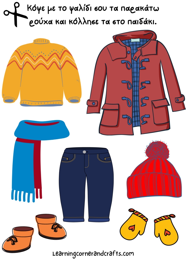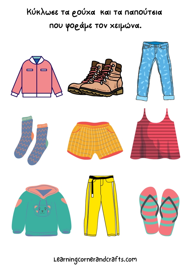 Είδαμε τα ρούχα του χειμώνα και τα περιγράψαμε. Συζητήσαμε γιατί φοράμε ρούχα και ποια η διαφορά των ρούχων της κάθε εποχής.