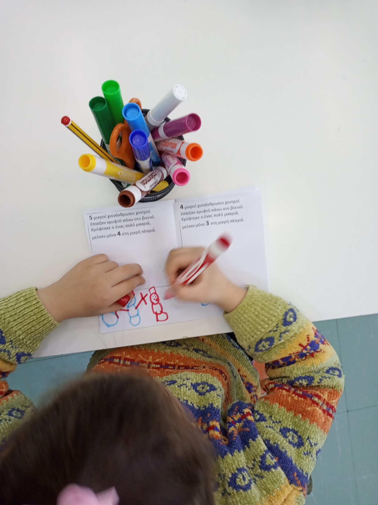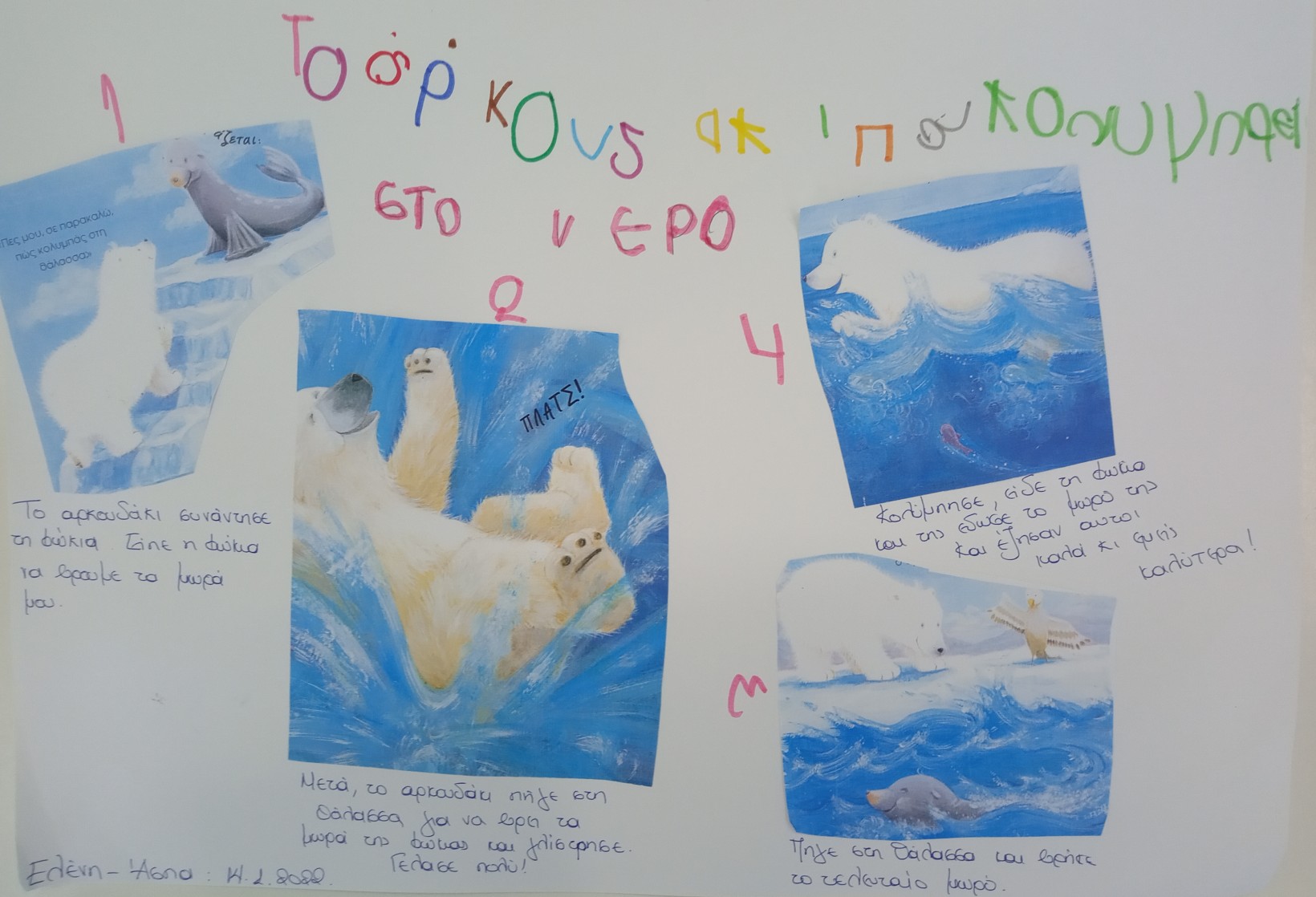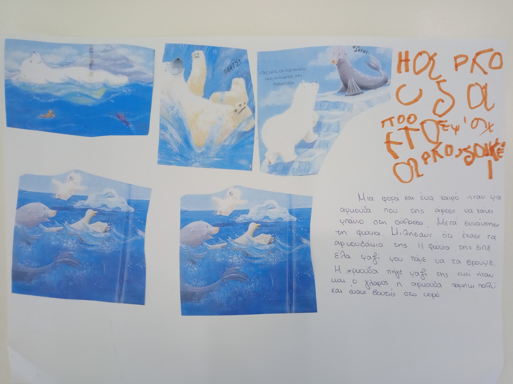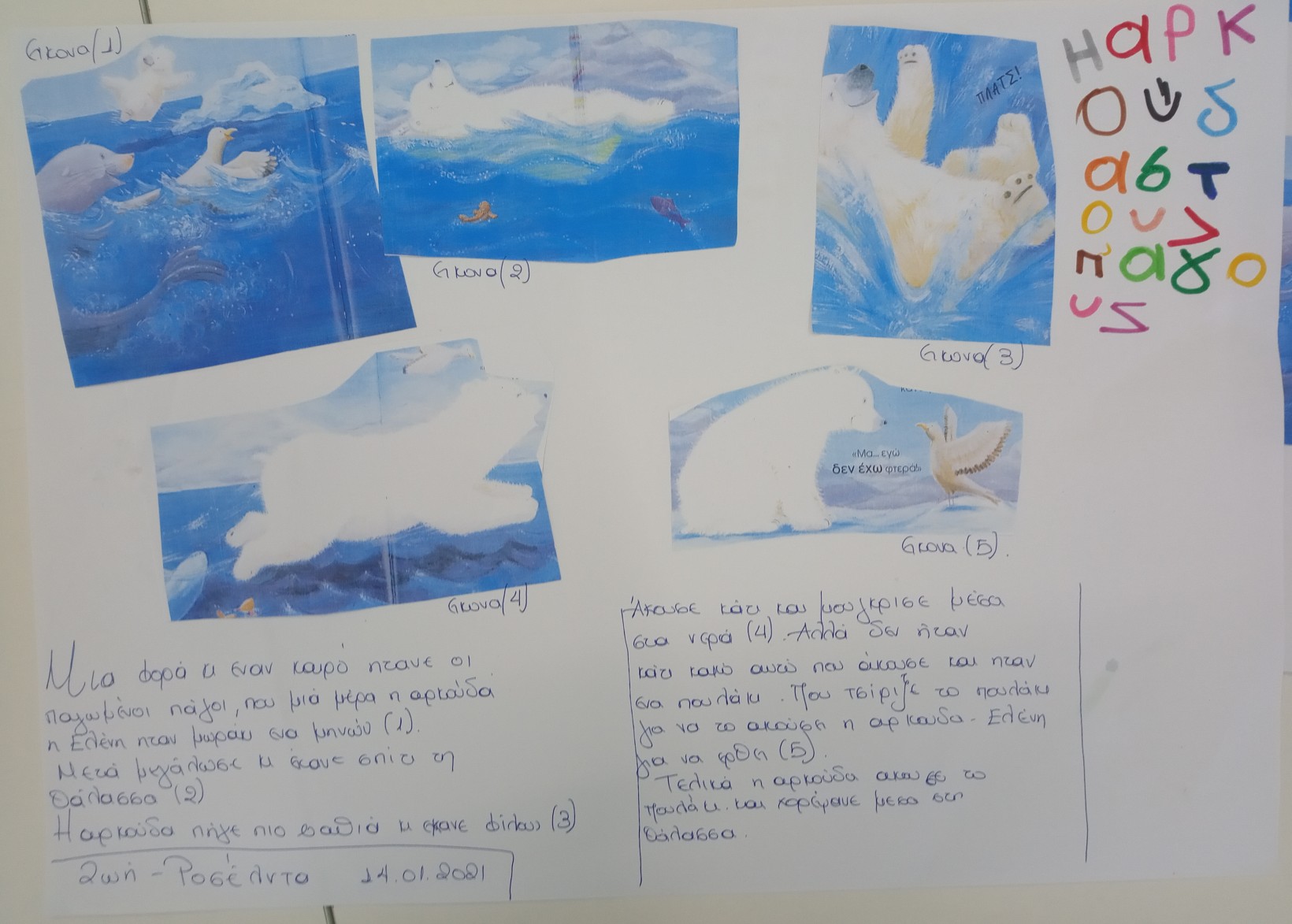 Τα παιδιά χωρίστηκαν σε ομάδες και με εικόνες μέσα από το βιβλίο έφτιαξαν από μία ιστορία , χωρίς να γνωρίζουν την ιστορία του βιβλίου.