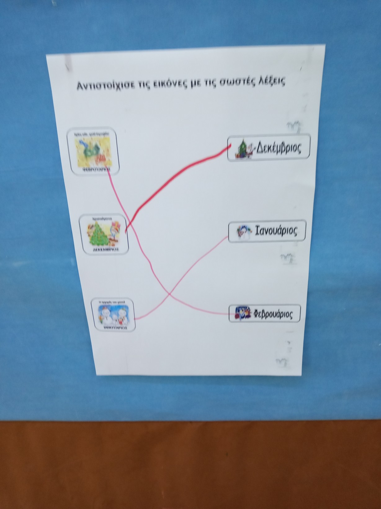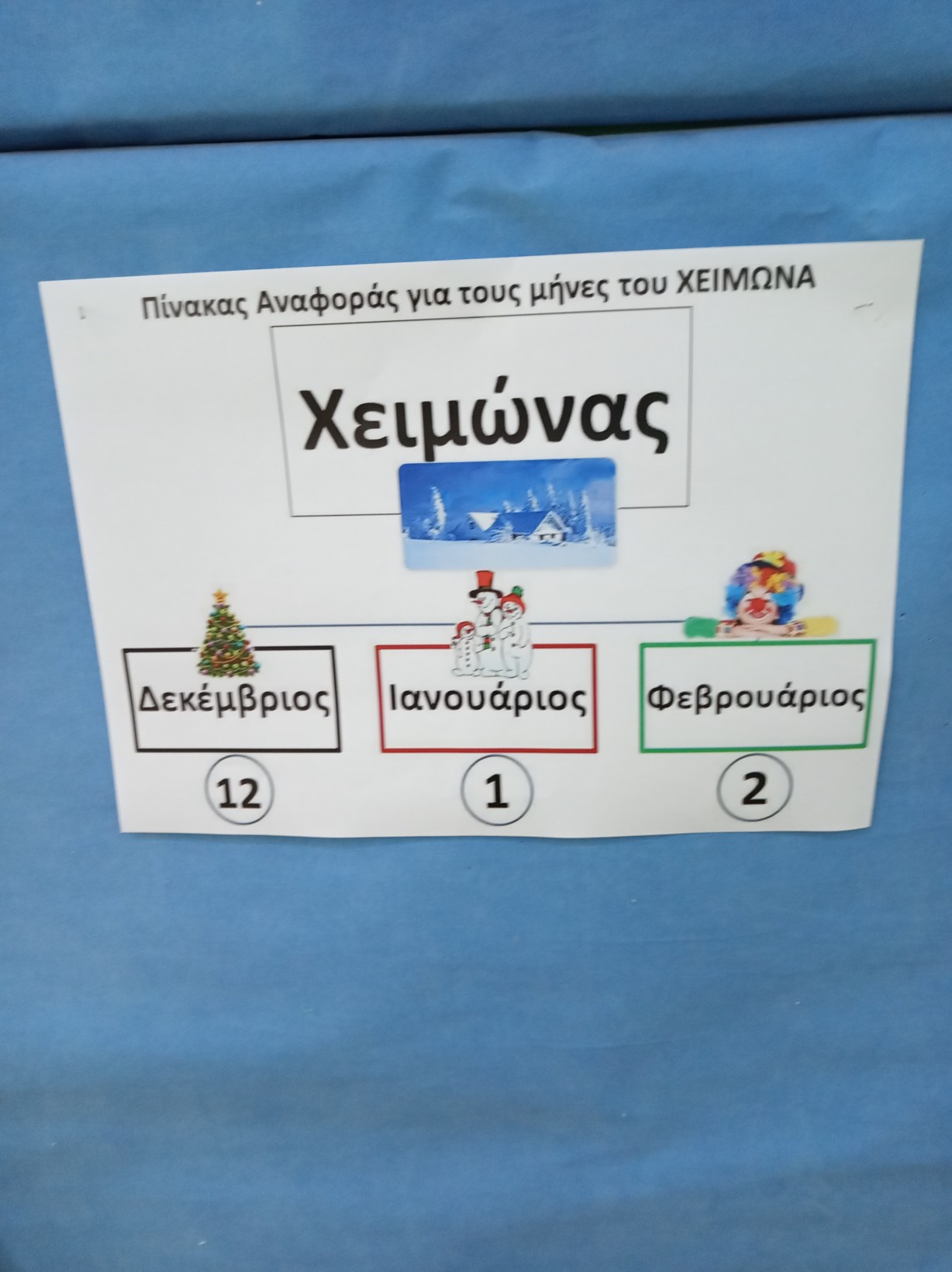 Η συζήτηση επικεντρώθηκε στους μήνες του χειμώνα καθώς στο ημερολόγιο της τάξης μας άλλαξε ο μήνας και ήρθε ο Φεβρουάριος. Οι μήνες του χειμώνα είναι τρεις :
