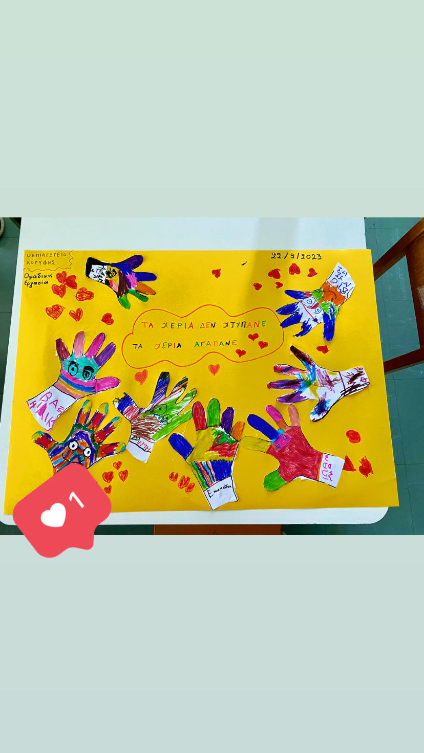 Με αφορμή το βίντεο από το βιβλίο της Μαρίας Κουτσανοπούλου “Τα χέρια δε χτυπάνε τα χέρια αγαπάνε” και αφού μιλήσαμε για τις συγκρούσεις μέσα στην τάξη και γνωρίσαμε χέρια χρωματιστά, συνειδητοποιήσαμε πως το χρώμα των χεριών μας είναι το ίδιο με του σώματός μας. Κι έτσι ..είμαστε όλοι διαφορετικοί! Φτιάξαμε τη δική μας αφίσα με τα πολύχρωμα χεράκια μας!!!