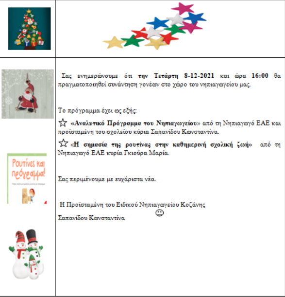 Ξεκινήσαμε τις ετοιμασίες για την πιο όμορφη γιορτή του χρόνου. Τα μικρά μας νηπιάκια μαζί με τις μικρές εξερευνήτριες ετοιμάζουν τις πιο όμορφες χειροτεχνίες και τα πιο μοναδικά στολίδια για να ομορφύνουν το μικρό μας παλατάκι!