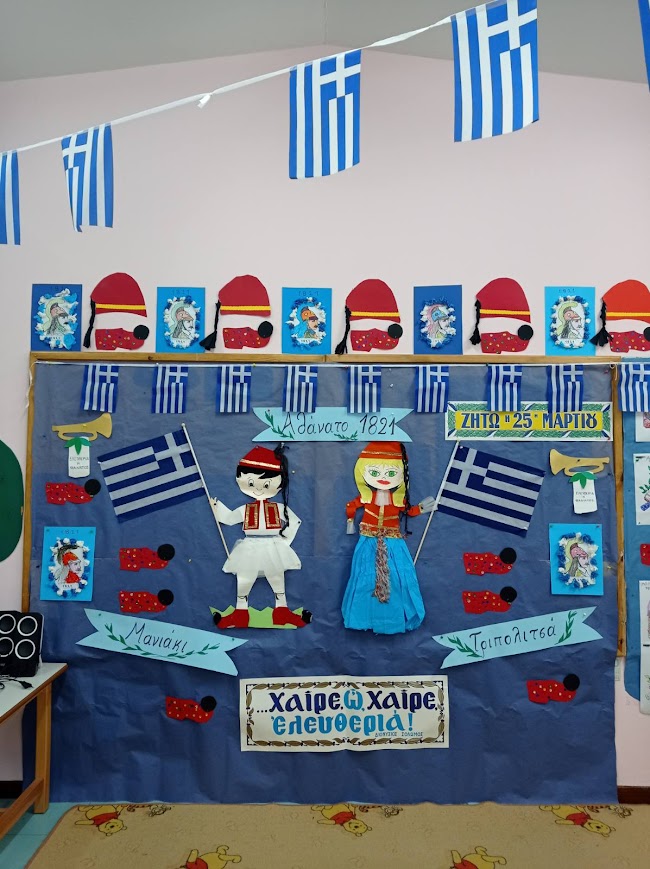Και χωρίς καλά καλά να το καταλάβουμε φτάσαμε στην γιορτή της 25ης Μαρτίου.Στολίσαμε τις τάξεις μας με ωραίες κατασκευές,μάθαμε ποιήματα,τραγούδια και χορούς και υποδεχτήκαμε τους γονείς μας στο σχολείο για να γιορτάσουμε μαζί τους.
