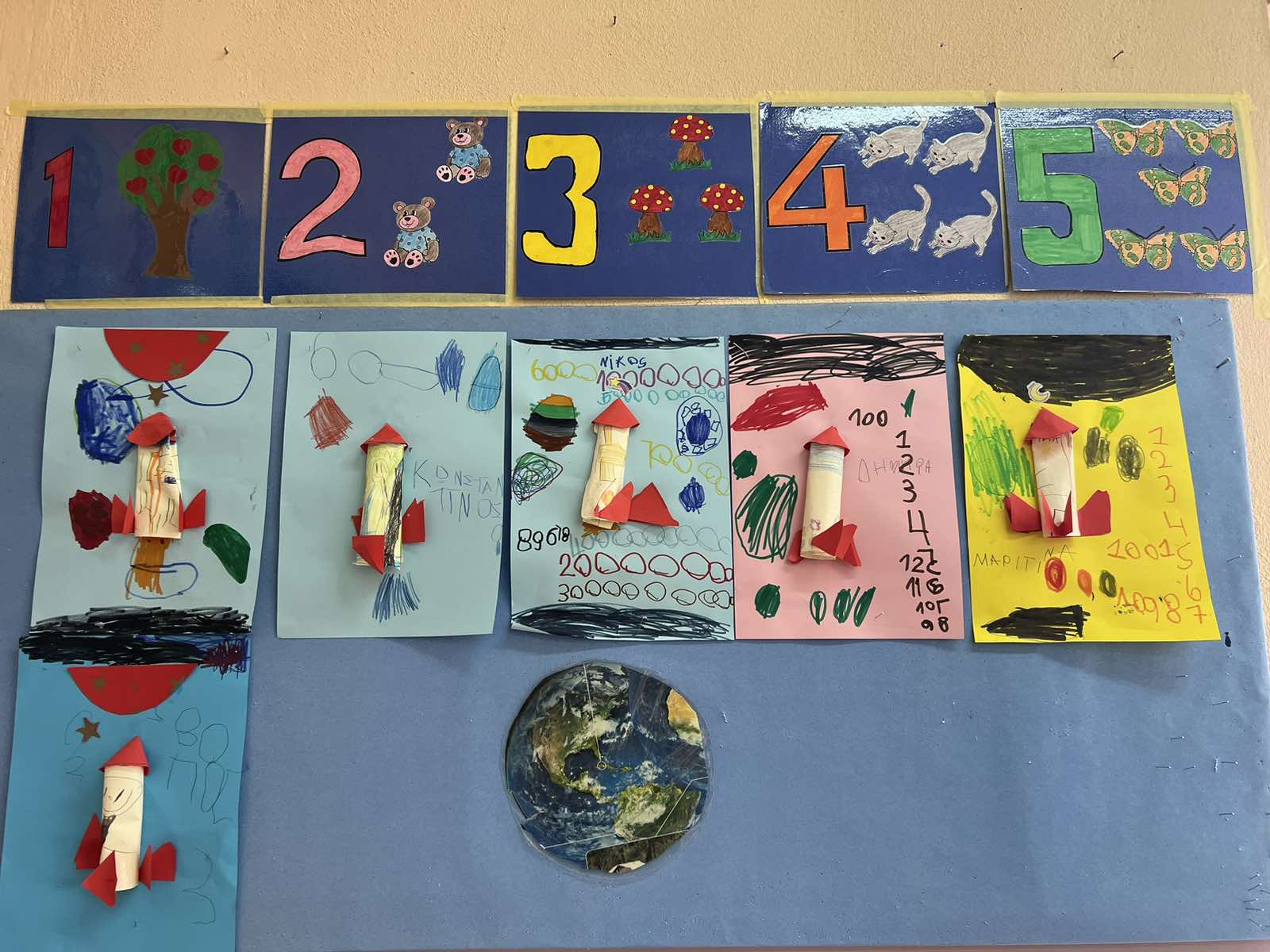 αξιοποιώντας διάφορα υλικά της τάξης (π.χ. κάνσον χρωματιστά, μπάλες από φελιζόλ, μαρκαδόρους). Έτσι, δόθηκε στα παιδιά η ευκαιρία να οπτικοποιήσουν τη σκέψη τους και όλα όσα έμαθαν, όπως η σειρά των πλανητών, η απόστασή τους από τον Ήλιο αλλά και τα χρώματα που τους χαρακτηρίζουν (π.χ. η γη ο γαλάζιος πλανήτης, κόκκινος πλανήτης ο Άρης, τα δαχτυλίδια του Κρόνου). ΦΕΒΡΟΥΑΡΙΟΣ-ΜΑΡΤΙΟΣ, 2023.