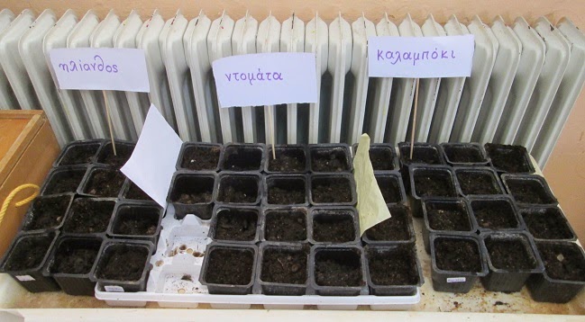 Φυτέψαμε βέβαια σε κυπελλάκια φυτωρίου ντόπιους σπόρους ντομάτας, καλαμποκιού και ηλίανθου.