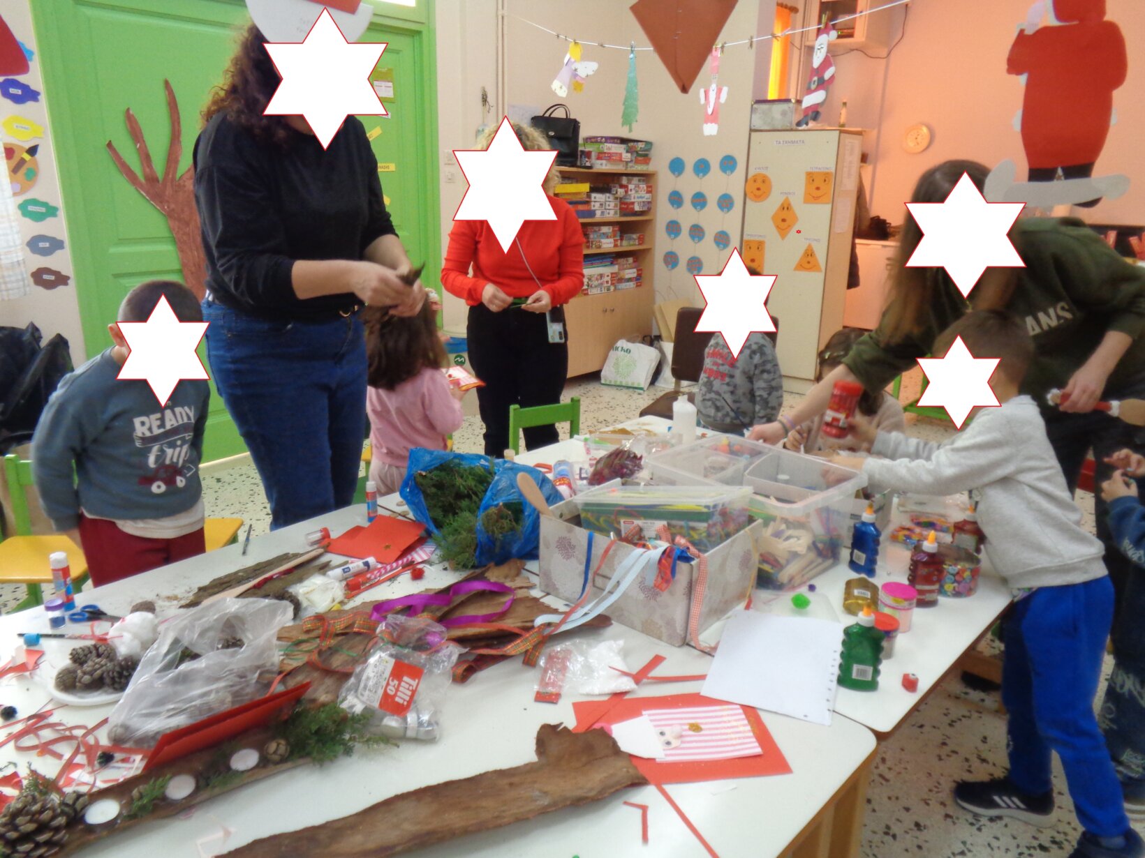 Τα φετινά Χριστούγεννα στο Νηπιαγωγείο οργανώθηκε ” Χριστουγεννιάτικο Εργαστήρι”. Οι γονείς συμμετείχαν ενεργά στις χριστουγεννιάτικες κατασκευές με χρυσόσκονες, κορδέλες, ξύλινα διακοσμητικά, φυσικά υλικά, ψαλίδια, ημερολόγια. Δημιουργήσαμε μαζί γιορτινές κατασκευές και μοιραστήκαμε τη μαγεία. Σας ευχαριστούμε θερμά.