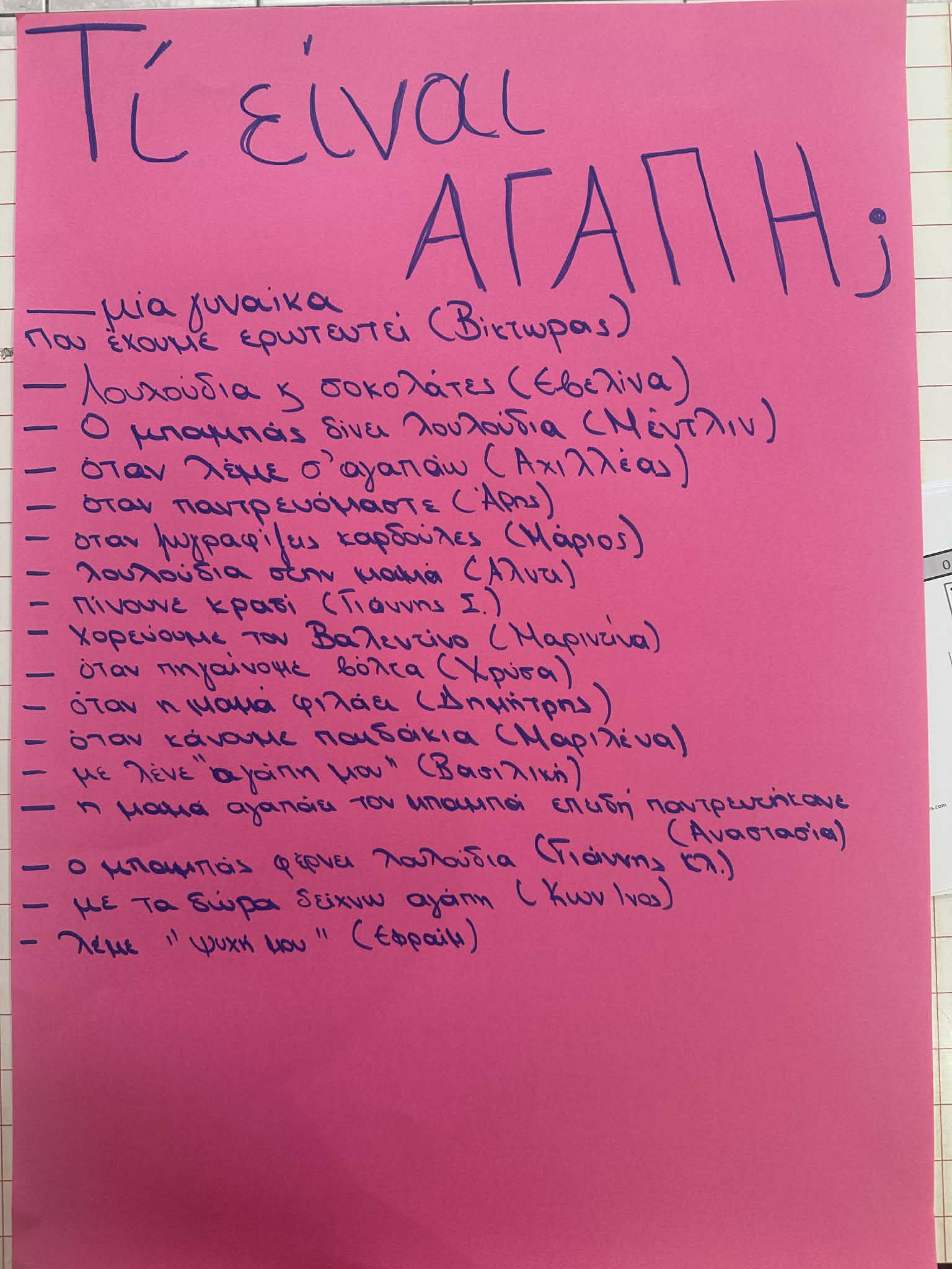 Την εβδομάδα αυτη ξεκινησαμε με μια δραστηριότητα κατα του σχολικού εκφοβισμού οπου συζητήσαμε γιατί “τα χερια δεν πονάνε” και καναμε μια σχετική ομαδικη κατασκευή. Γνωρίσαμε επίσης το “Αγαπάκι”, την ιστορία και το τραγούδι του και συζητήσαμε για την σημασία της κατανόησης στα πλαίσια της οικογένειας.