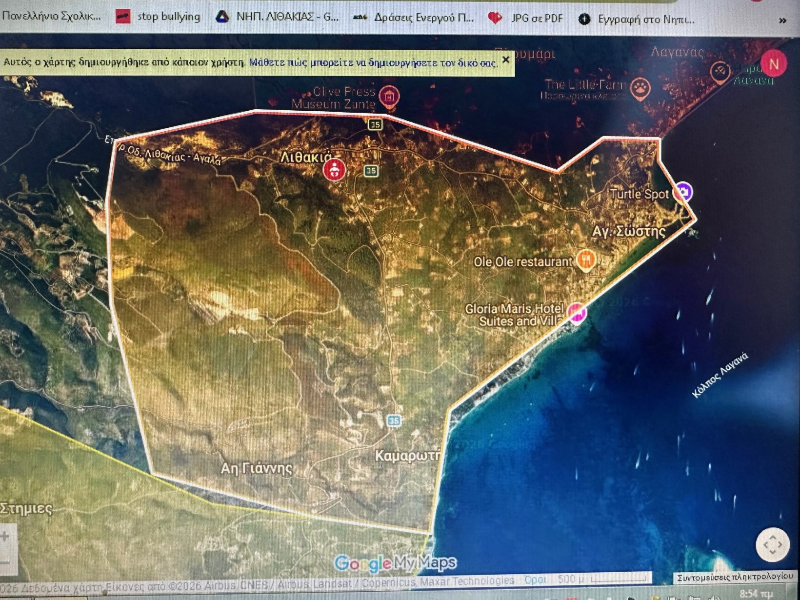 Επειτα, περασαμε στην επόμενη θεματική, την προστασία της θαλάσσιας χελώνας, που γεννιεται τόσο κοντά μας στον κολπο του Λαγανά. Προσπαθησαμε να ζωγραφισουμε την χελωνα στο φυσικό της περιβάλλον βλεποντας μια εικονα και συζητησαμε για την ζωή της.