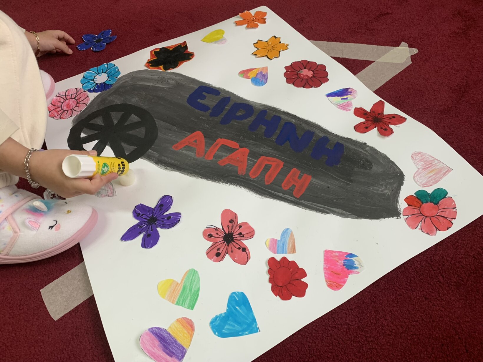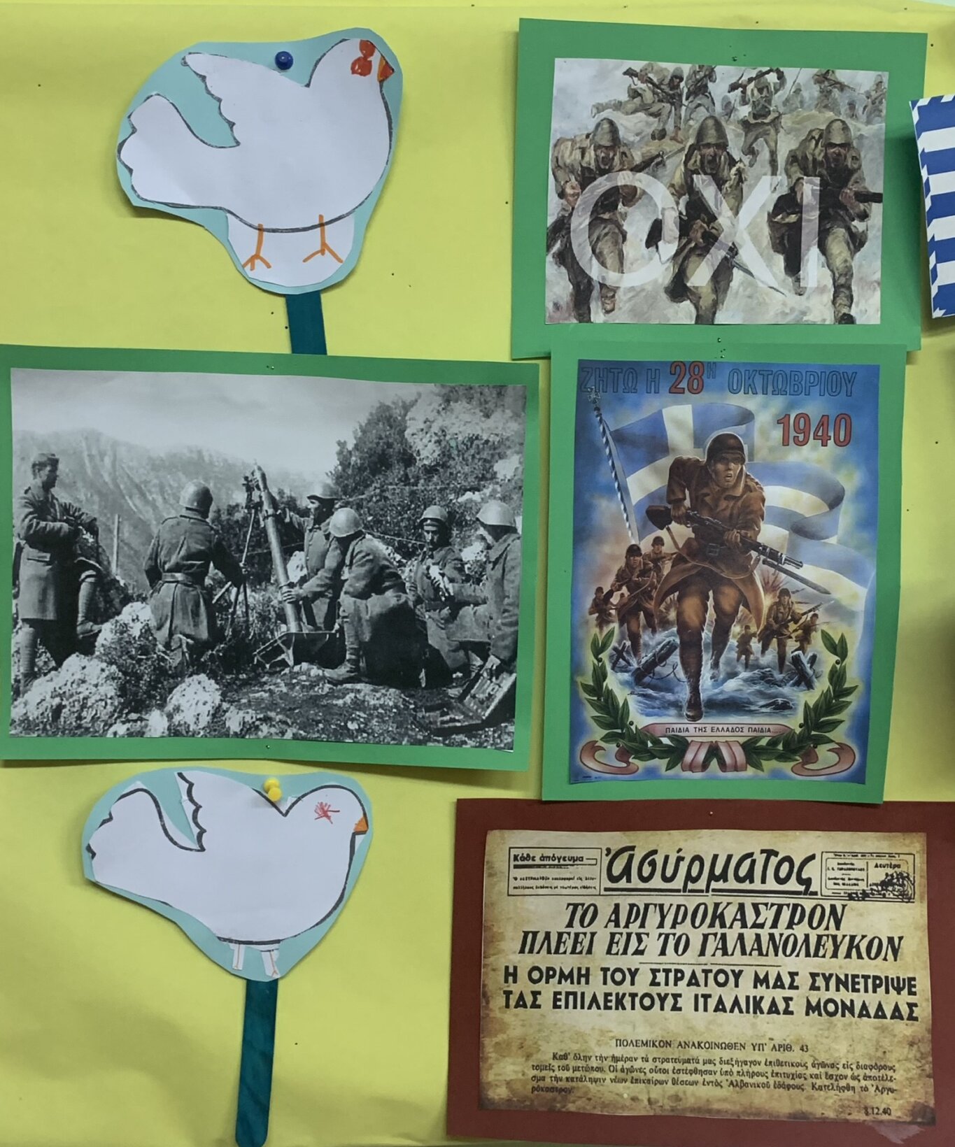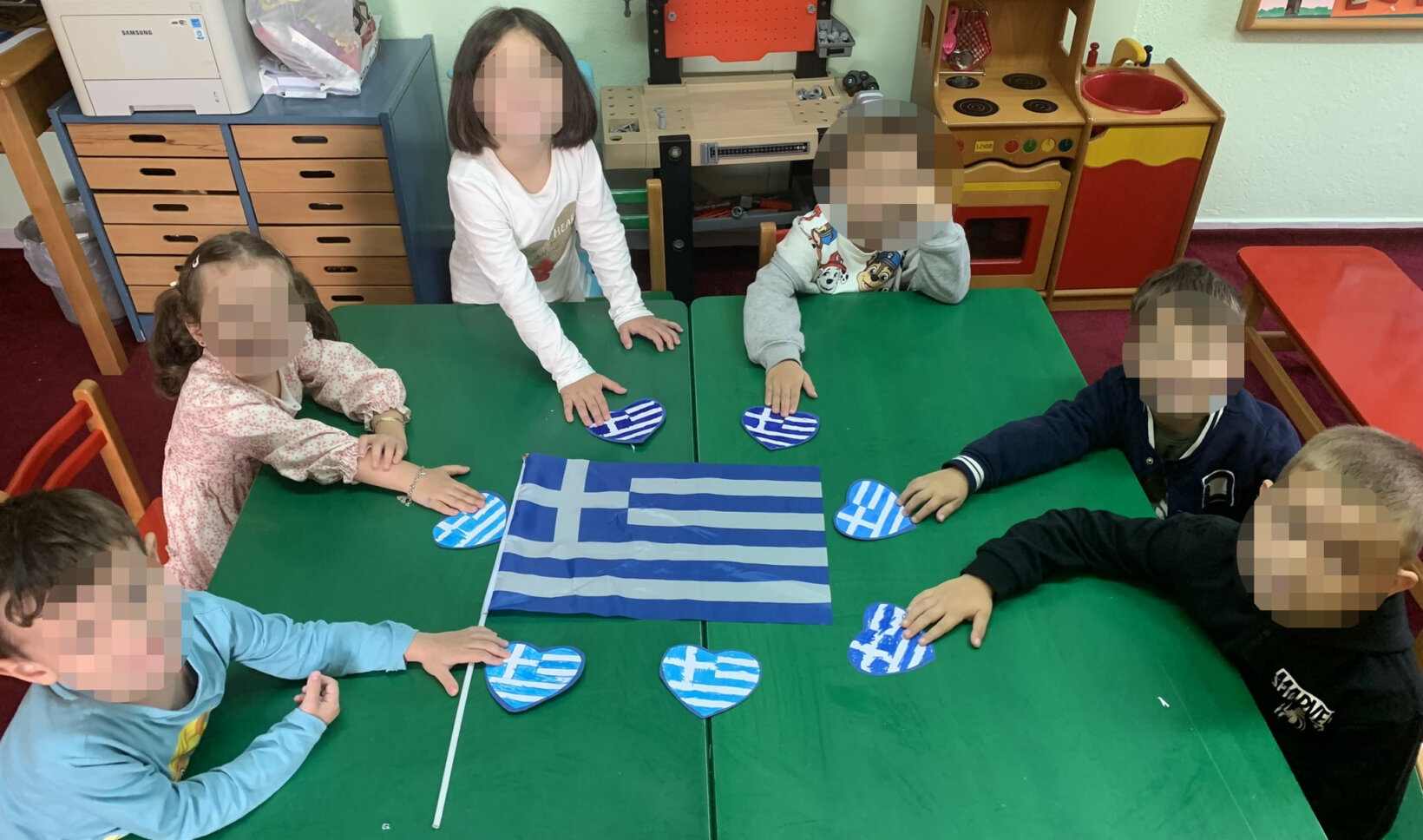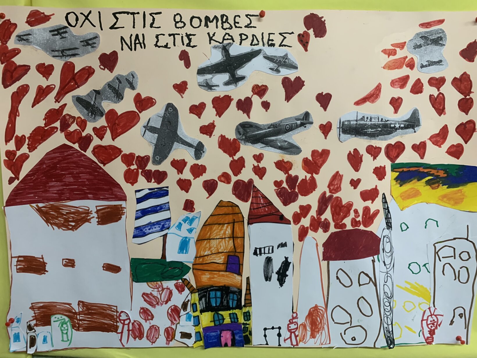 Η 28η Οκτωβρίου είναι μια μέρα που μας θυμίζει πόσο σημαντική είναι η ειρήνη και η ελευθερία για όλους τους ανθρώπους. Στο νηπιαγωγείο, γιορτάσαμε αυτή τη μέρα με ποικίλες δραστηριότητες που μας βοήθησαν να καταλάβουμε καλύτερα την αξία αυτών των δύο σημαντικών εννοιών. Τα παιδιά απήγγειλαν ποιήματα και τραγούδησαν για την 28η Οκτωβρίου, εκφράζοντας τη χαρά αλλά και το σεβασμό τους στους πεσόντες ήρωες που πολέμησαν για την ελευθερία. Επίσης, διαβάσαμε το παραμύθι “Το Κανόνι της Ειρήνης”, το οποίο τονίζει τη σημασία της ειρηνικής συνύπαρξης. Μετά την ανάγνωση, τα παιδιά δημιούργησαν ομαδικά έργα, εμπνευσμένα από το παραμύθι, εκφράζοντας έτσι την ανάγκη για παγκόσμια ειρήνη, αγάπη και ευημερία (“Α’ Θεματικό Πεδίο: Παιδί και Επικοινωνία” και Δ’ Θεματικό Πεδίο: Παιδί Δημιουργία και Έκφραση” του νέου αναλυτικού προγράμματος σπουδών νηπιαγωγείου).
