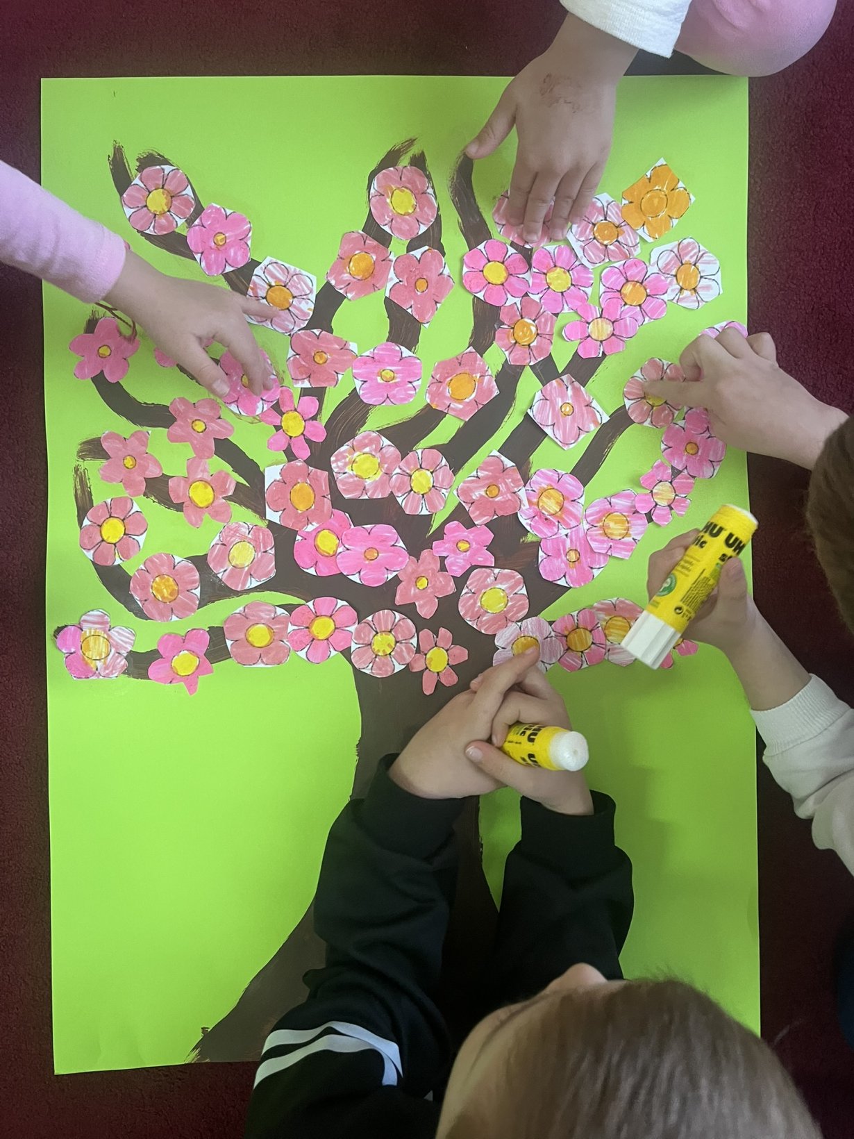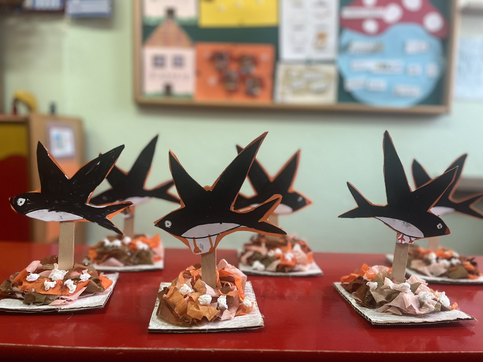 Με αφορμή τον ερχομό της Άνοιξης, γνωρίσαμε τον Μύθο της Αμυγδαλιάς και φτιάξαμε το δικό μας δέντρο αμυγδαλιάς στην τάξη. Μιλήσαμε για τον ερχομό των αποδημητικών πουλιών και κατασκευάσαμε χελιδόνια αλλά και τον ιδιαίτερα αγαπητό στα παιδιά πελαργό του σχολείου μας, με μπαλάκια από γκοφρέ χαρτί, εξασκώντας παράλληλα τη λεπτή κινητικότητα. Φυσικά και δε θα μπορούσαμε να μη δημιουργήσουμε πεταλούδες και πασχαλίτσες, καθώς είναι από τα πιο όμορφα έντομα που εμφανίζονται κατά την διάρκεια των ανοιξιάτικων μηνών και ζωντανεύουν τη φύση γύρω μας! Η φύση ξυπνά και μαζί της ξυπνάει η χαρά και η δημιουργία στην τάξη μας!
