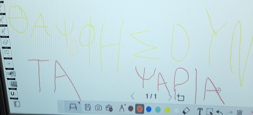 Πλαστικά στη θάλασσα Χρησιμοποιούμε το θέμα των Εργαστηρίων Δεξιοτήτων «Βουτιά στο πλαστικό» για να γράψουμε στον διαδραστικό πίνακα τις ιδέες μας.