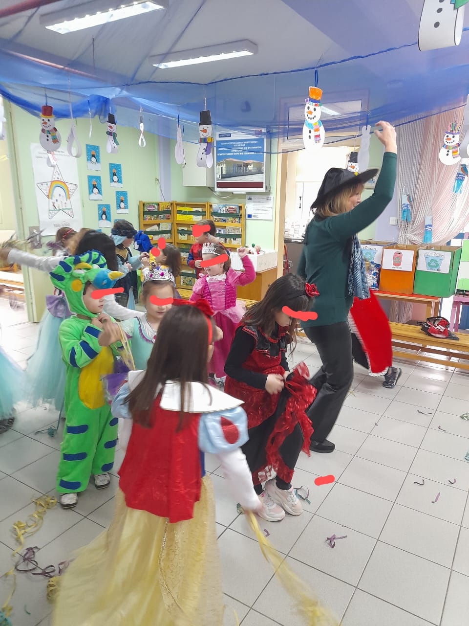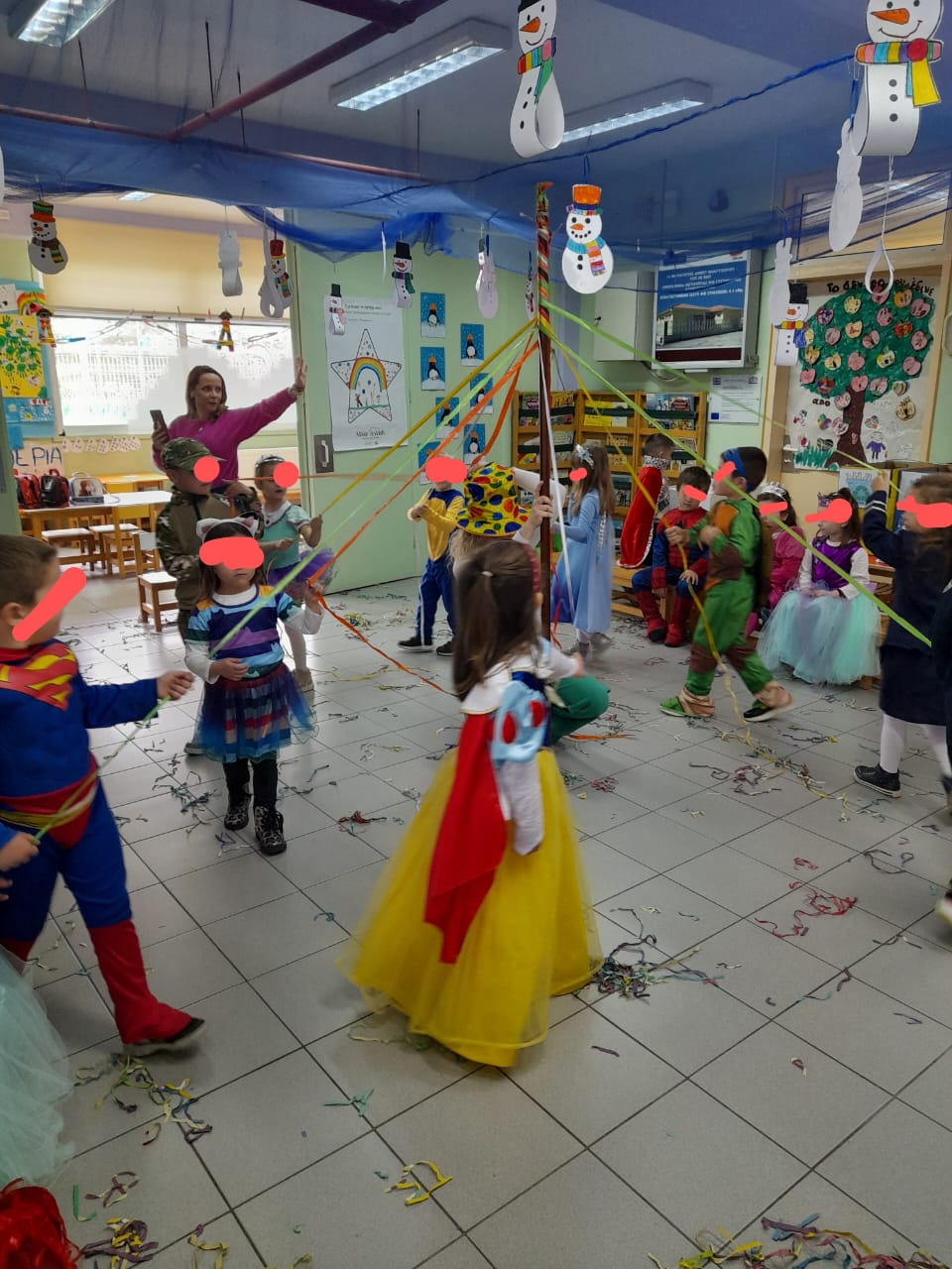 🎶 Χορέψαμε με αποκριάτικα τραγούδια και κάναμε παιχνίδια με σερπαντίνες.