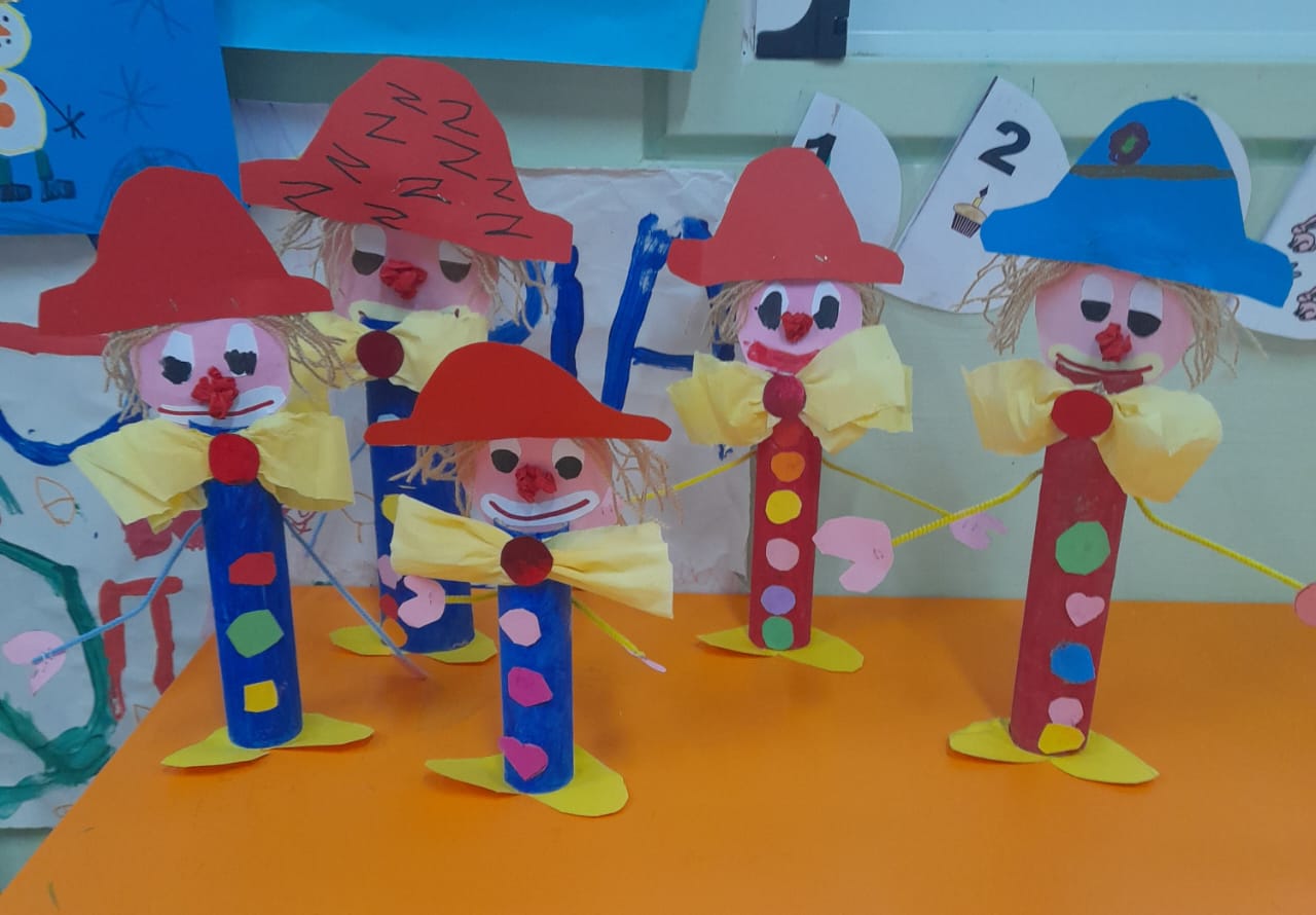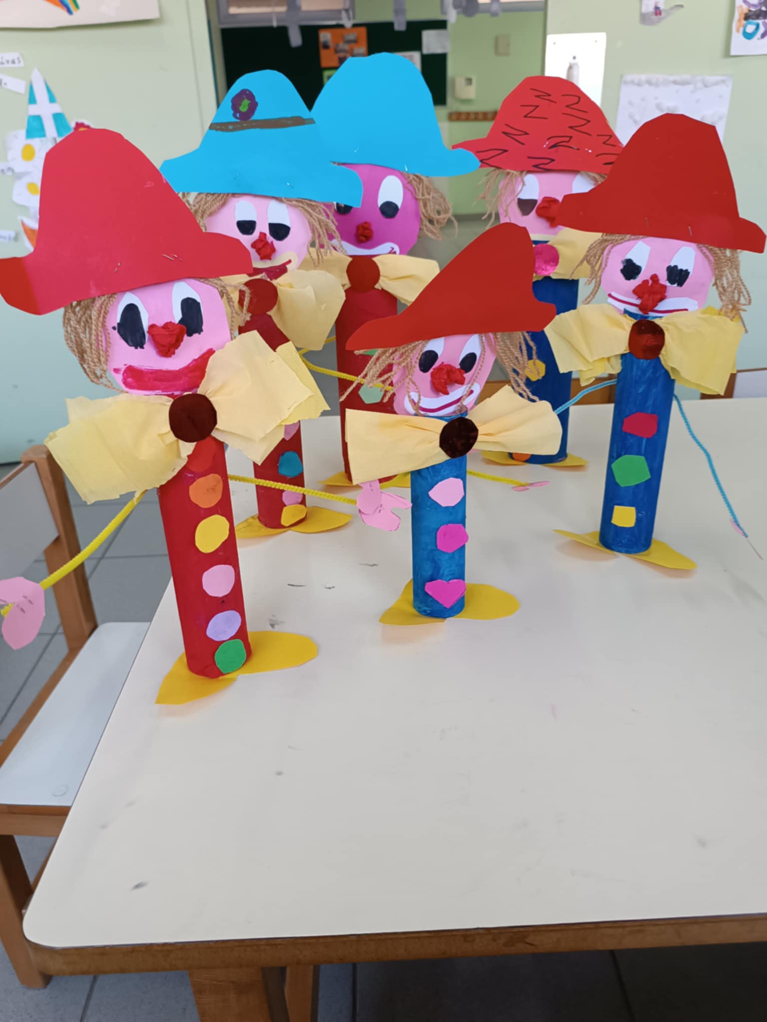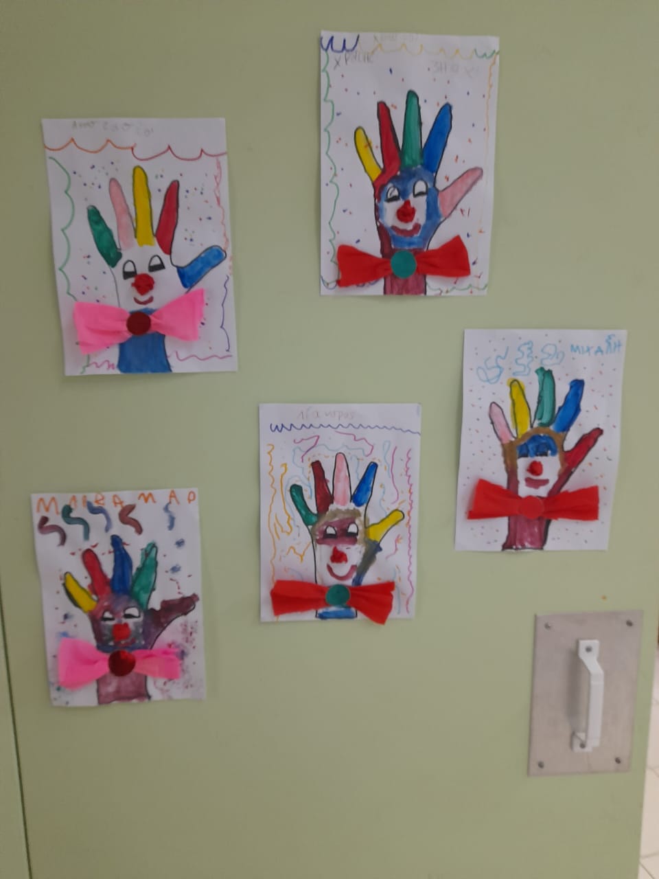 Μέσα από θεατρικό παιχνίδι, τα παιδιά μεταμορφώθηκαν σε κλόουν, πειρατές, μάγισσες και άλλα αποκριάτικα πρόσωπα. Παίξαμε παντομίμα, όπου έπρεπε να μαντέψουμε ποιον χαρακτήρα υποδυόταν κάθε παιδί, ενώ στο θεατρικό μας παιχνίδι «Το χαμένο καπέλο του Κλόουν», τα παιδιά έπρεπε να συνεργαστούν για να λύσουν το μυστήριο.