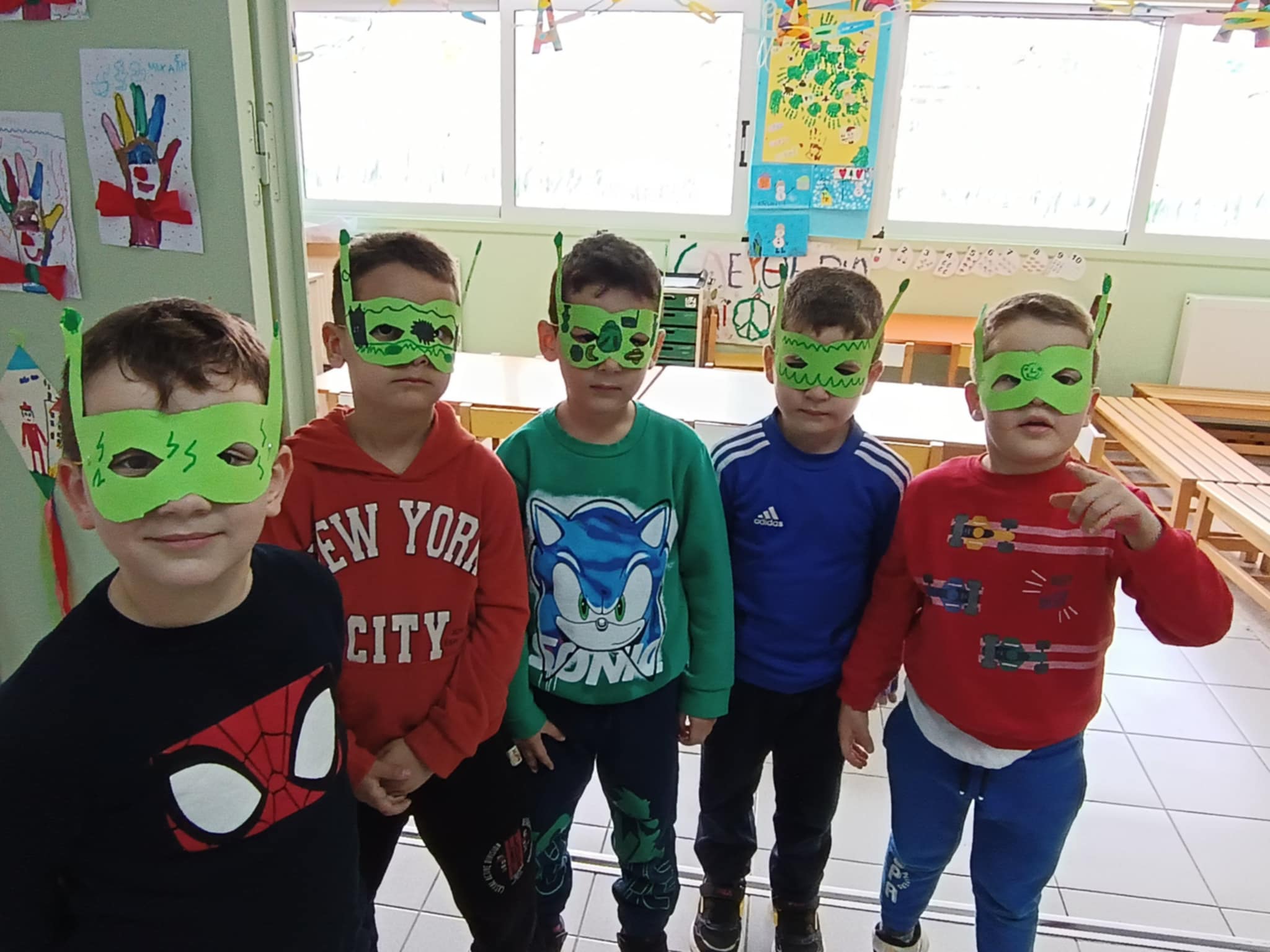 Η θεματική ενότητα «Απόκριες» ολοκληρώθηκε με μεγάλη επιτυχία, γεμίζοντας το σχολείο μας με χρώματα, γέλια και δημιουργικότητα. Τα παιδιά συμμετείχαν με ενθουσιασμό σε όλες τις δραστηριότητες, εξερευνώντας τα αποκριάτικα έθιμα μέσα από παιχνίδια, μουσική, κατασκευές.